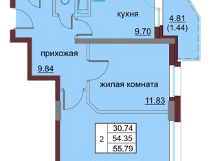 Общая площадь: 55.79 м2
