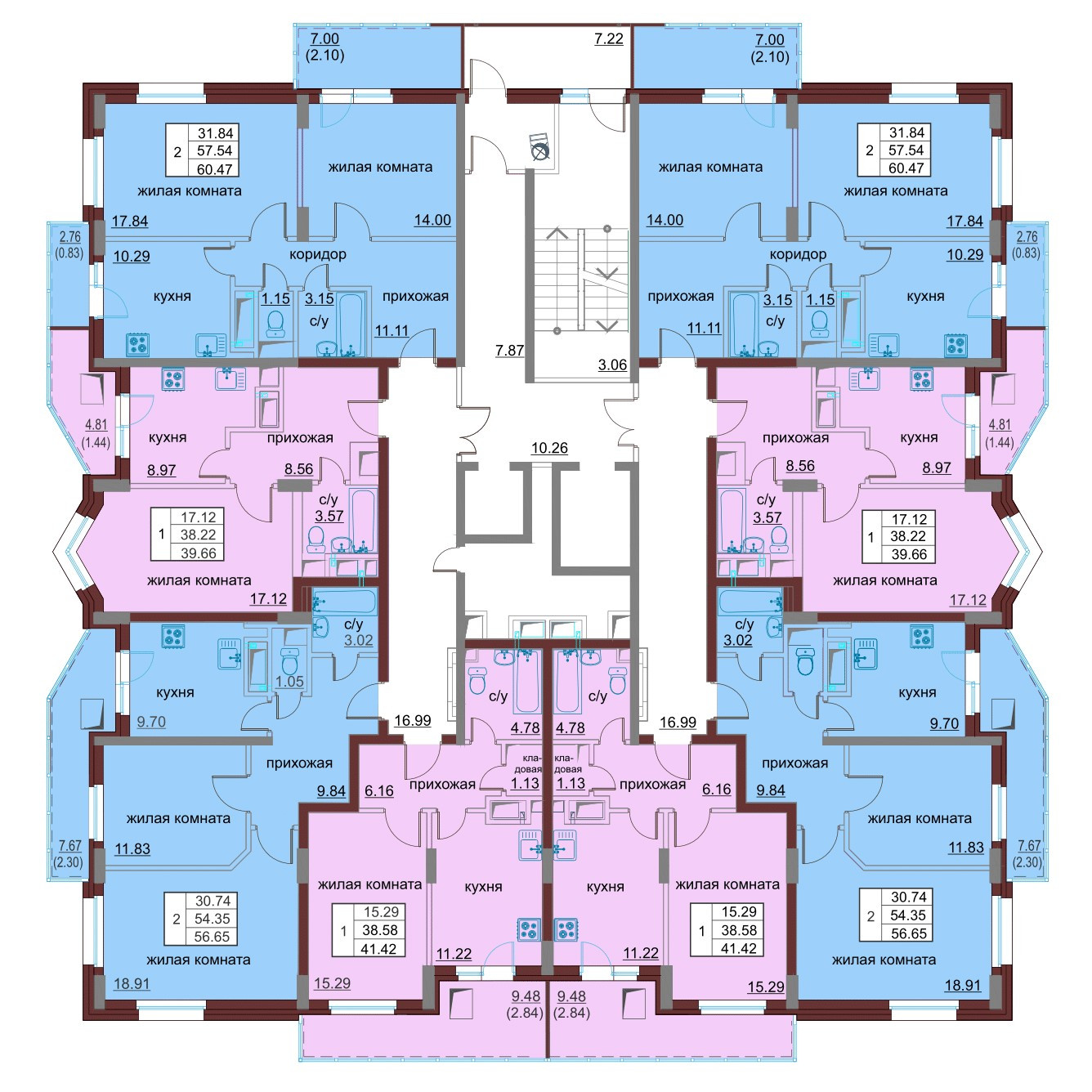 Общая площадь 41.42 м2