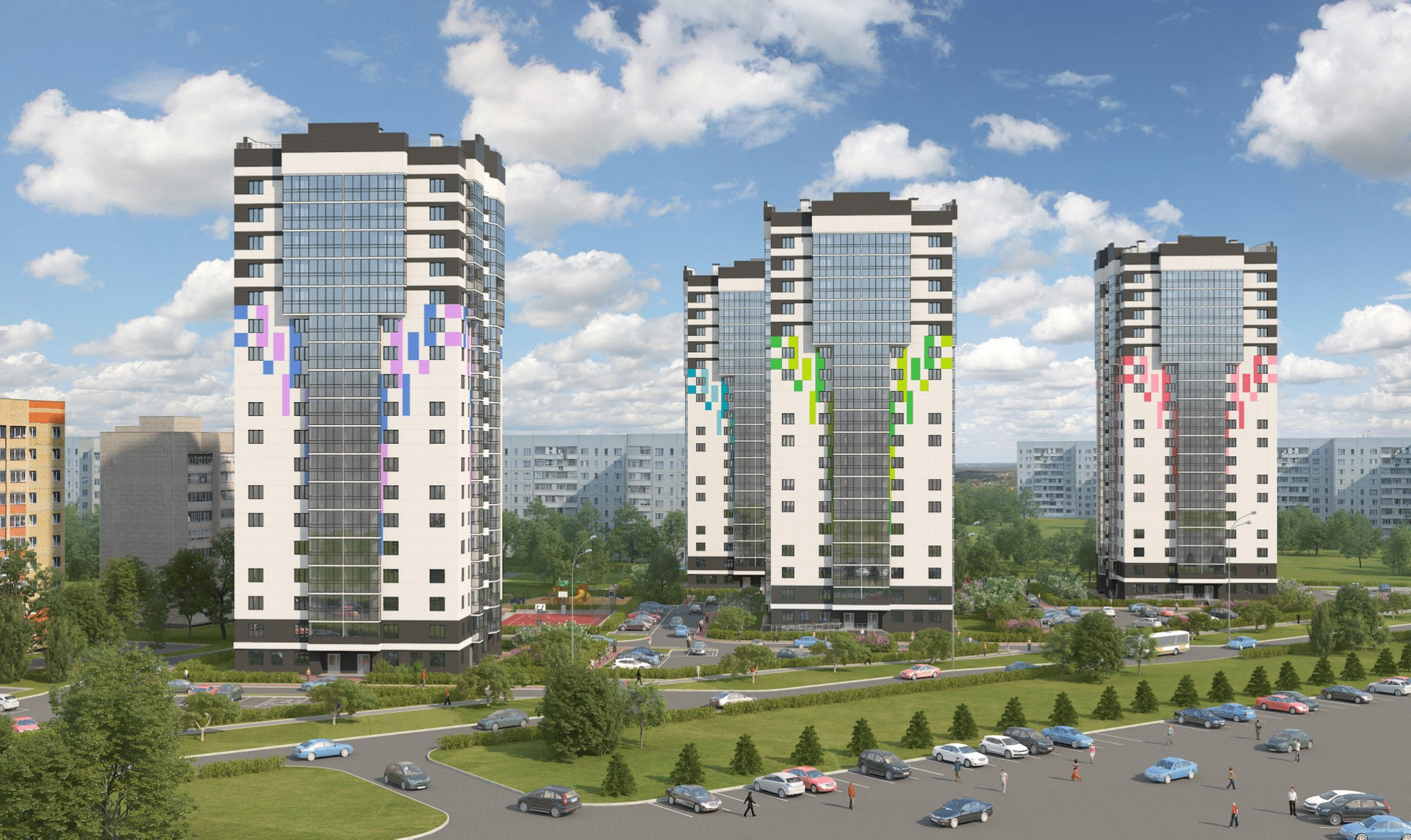 На территории жилого комплекса продуманы места для отдыха, спорта и развлечений, а во входной группе на первом этаже есть колясочная и помещение консъержа. Все базовые объекты инфраструктуры находятся в шаговой доступности: остановки общественного транспорта, ПОК «Адымнар-Алабуга»,  МБОУ "Многопрофильный лицей №10" ЕМР РТ, детские сады №35, №36, №39, городская поликлиника, аптеки, торговые центры и магазины.