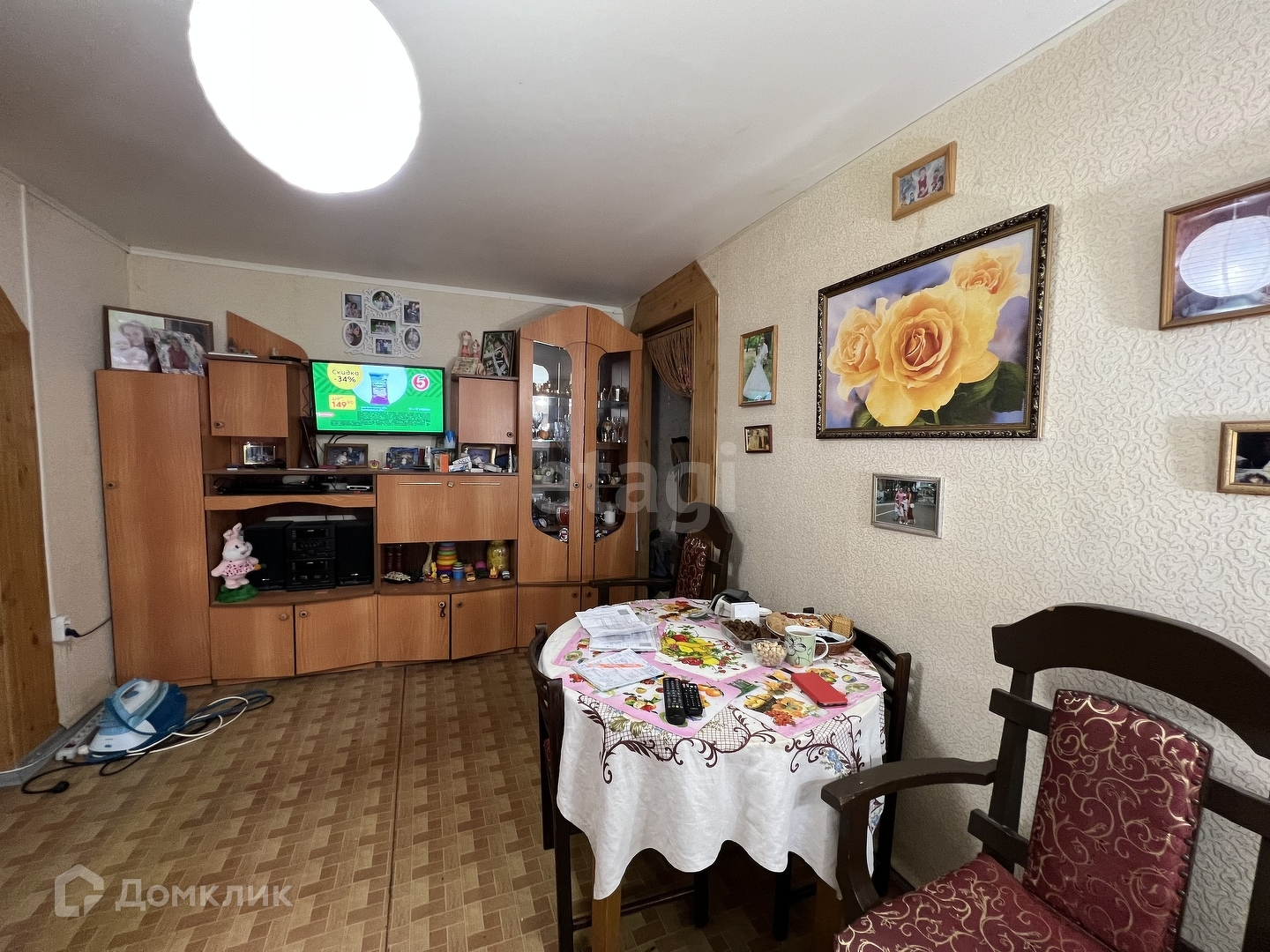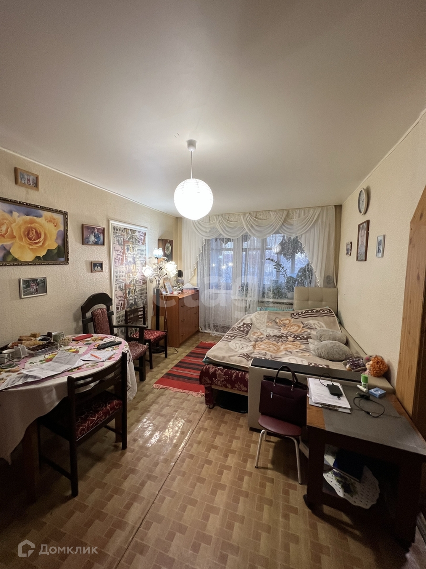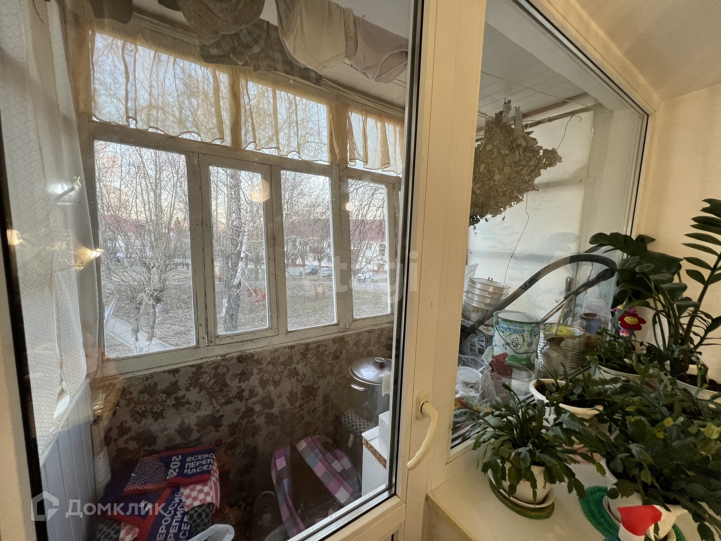 Пластиковые окна, застеклённая лоджия, на полу линолеум. Остаётся часть мебели: диван, кухонный гарнитур, шкаф купе.