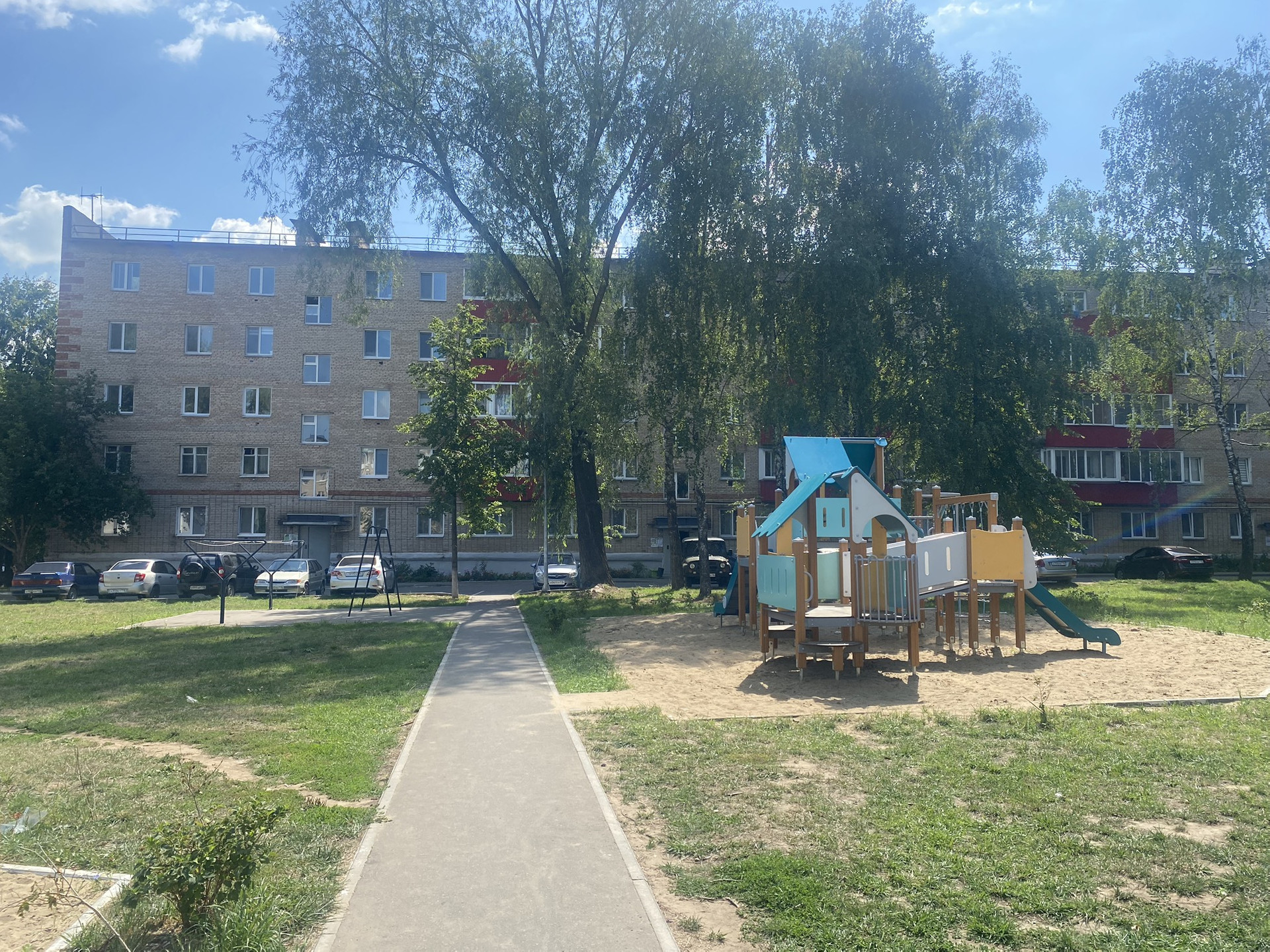 Во дворе новая детская площадка, комфортная стоянка.