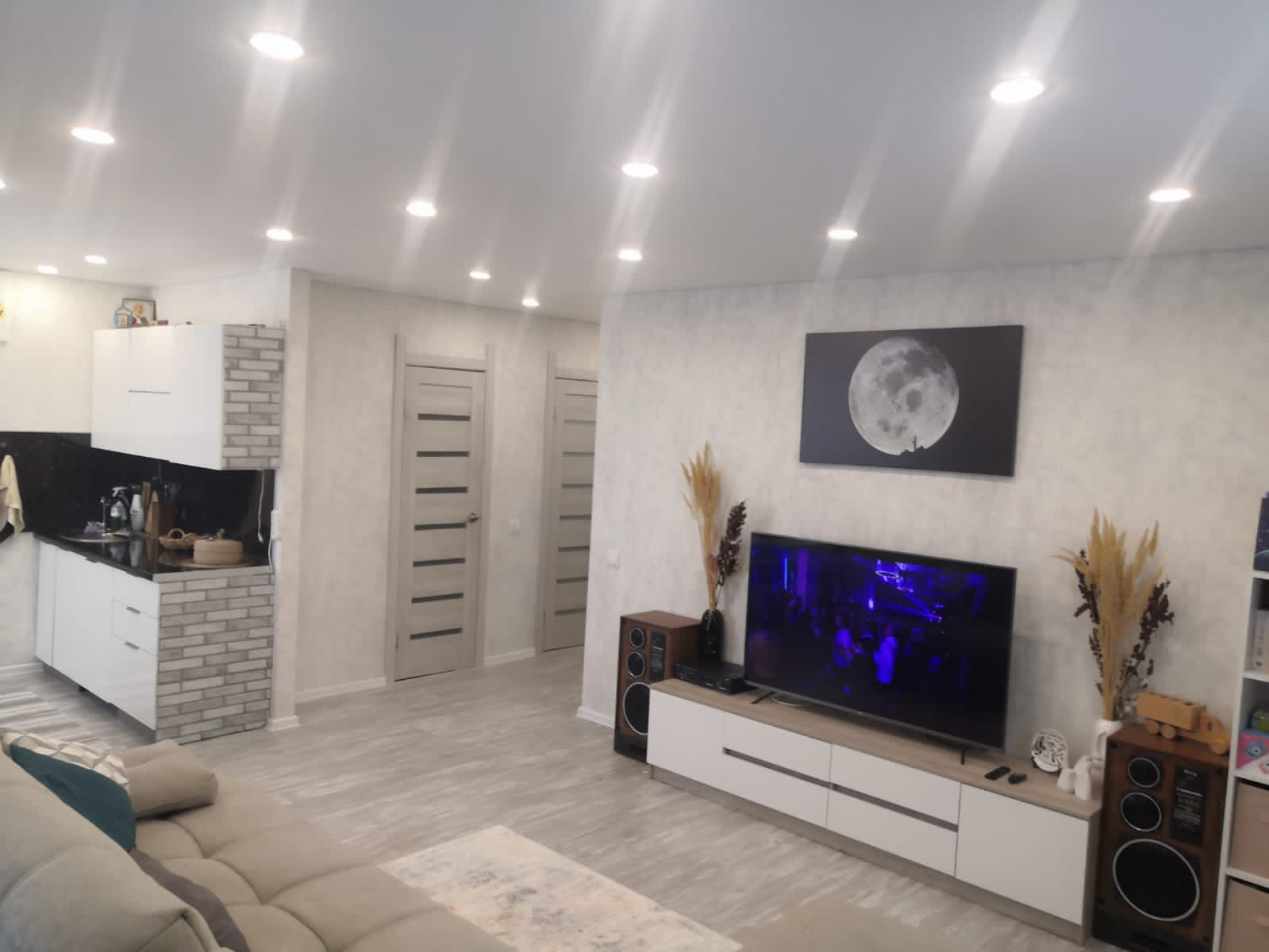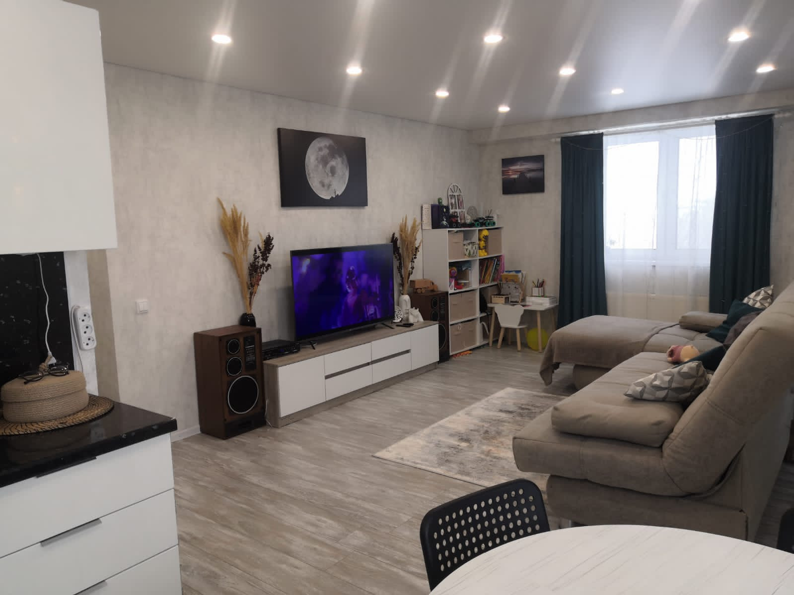 По всей квартире сделана шумоизоляция, кондиционер "12ка"  охлаждает всю квартиру. Прекрасный балкон с ламинатом и Видом на Каму и луга.