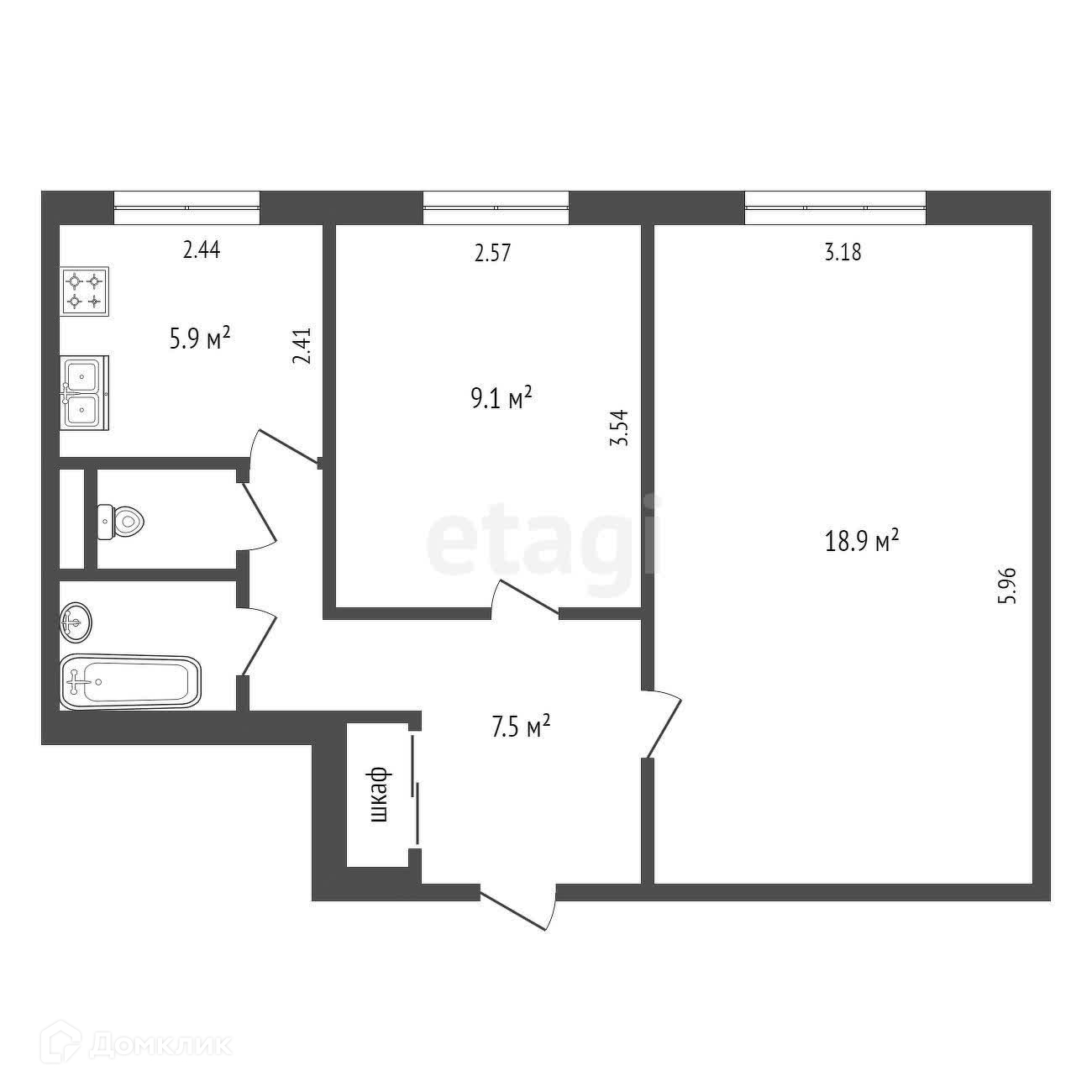 Площадь кухни 5.9 м2