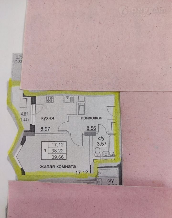 Жилая площадь 17.1 м2