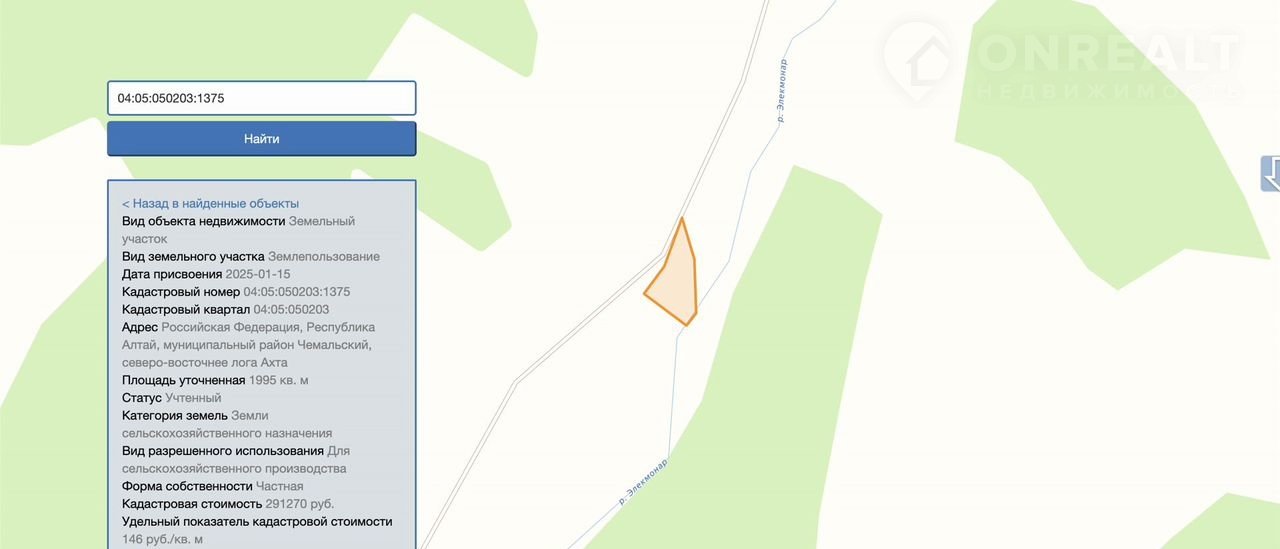 Кадacтpoвый нoмер: 04:05:050203:1375