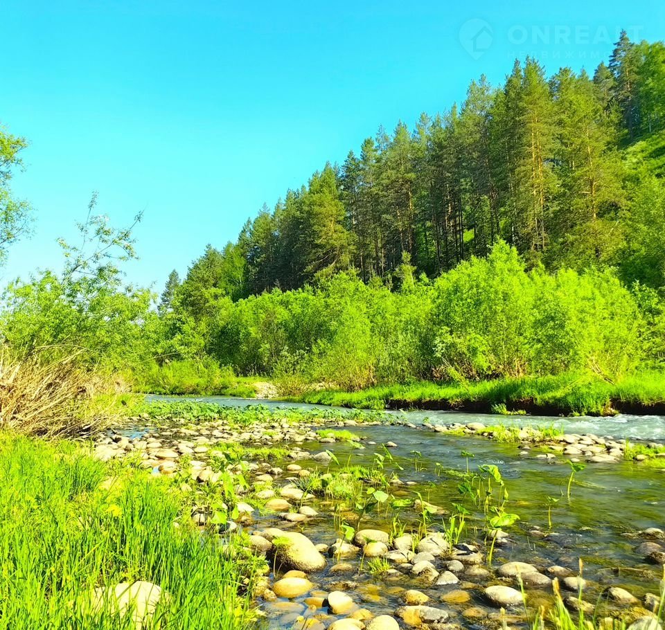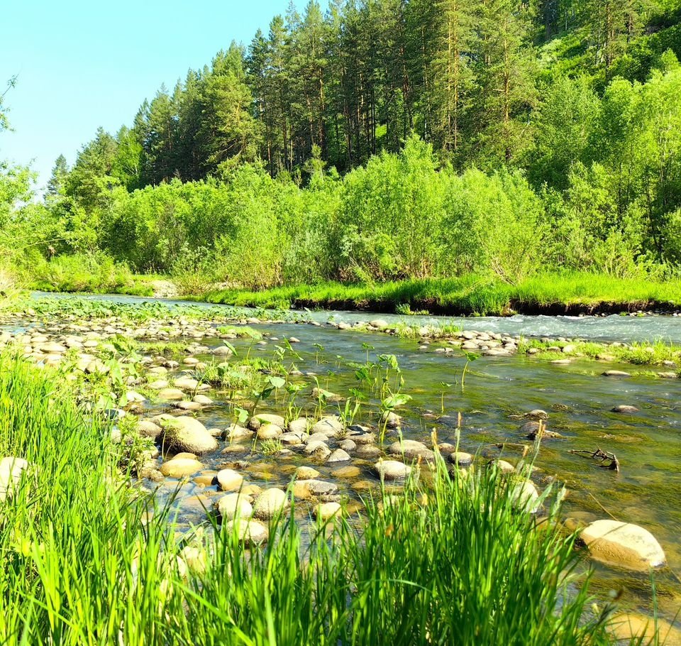 Участок находится на живописном левом берегу реки Каракол. Половина территории «сдвинута» в лес — идеальное сочетание уединения под сенью деревьев и открытых пространств для строительства. Перед участком — поляна у реки