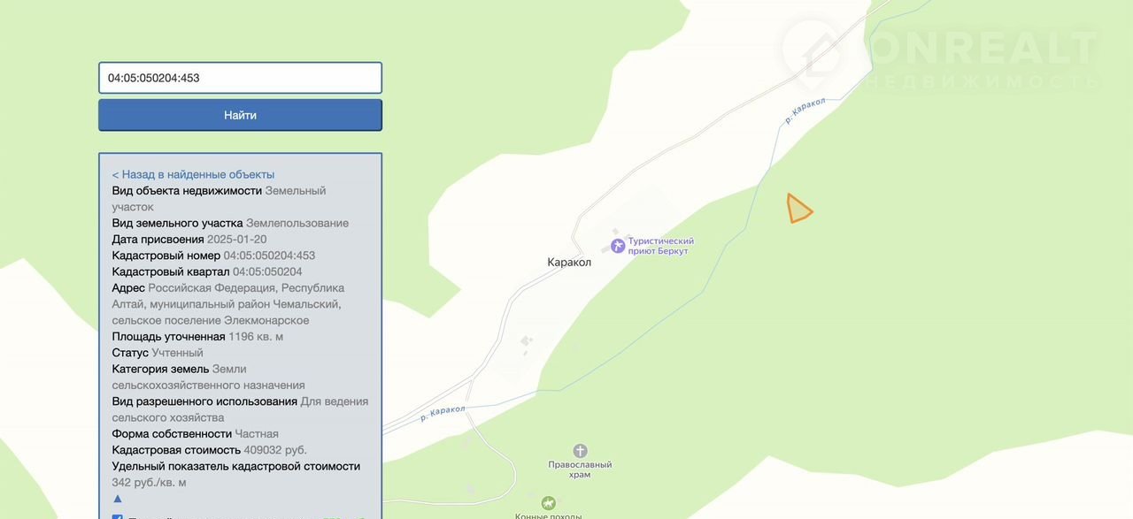 Кадacтрoвый нoмеp: 04:05:050204:453