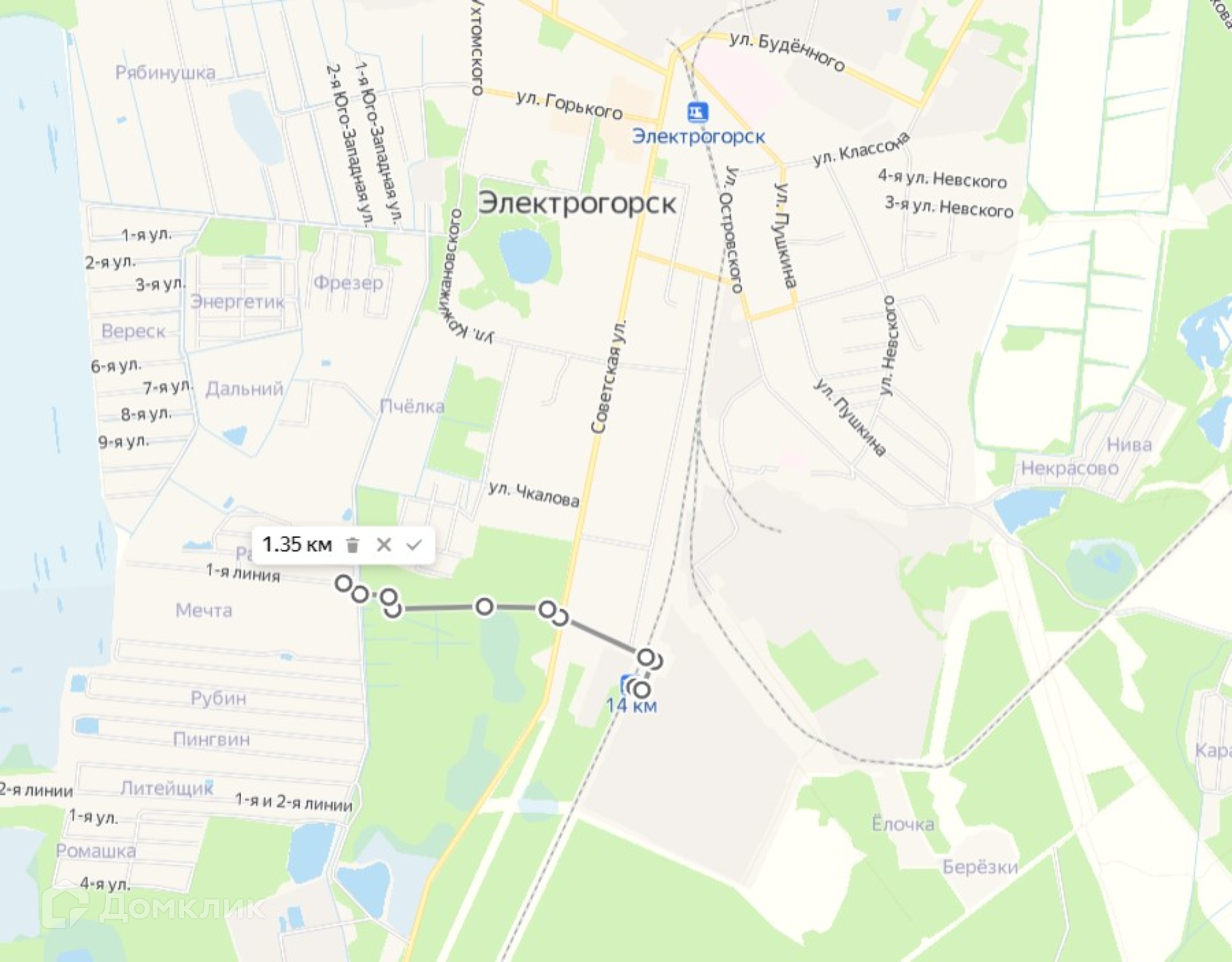 Прекрасная пешая доступность. До станции 14 Км (г. Электрогорск) пешком 15 минут ходьбы, до сетевых магазинов 20 минут ходьбы.