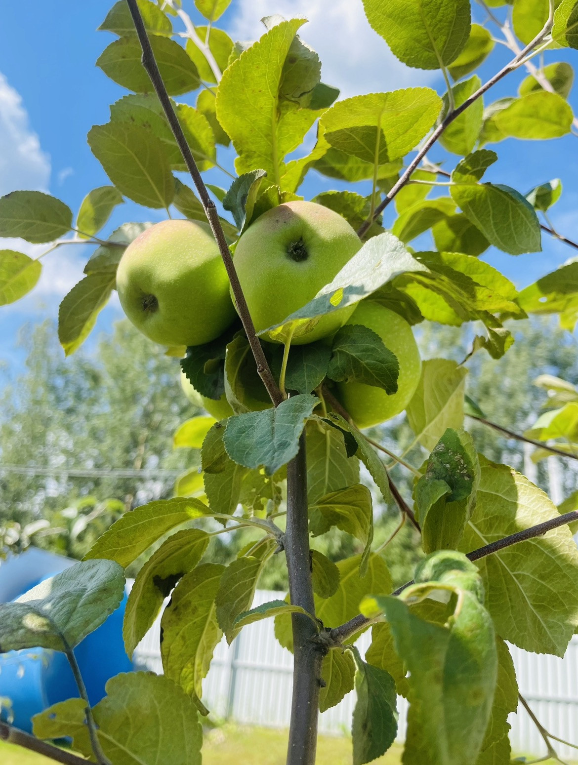 Растут несколько видов яблок, сливы, черешня