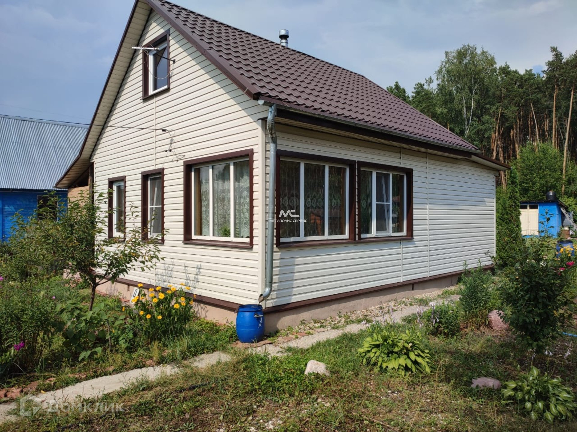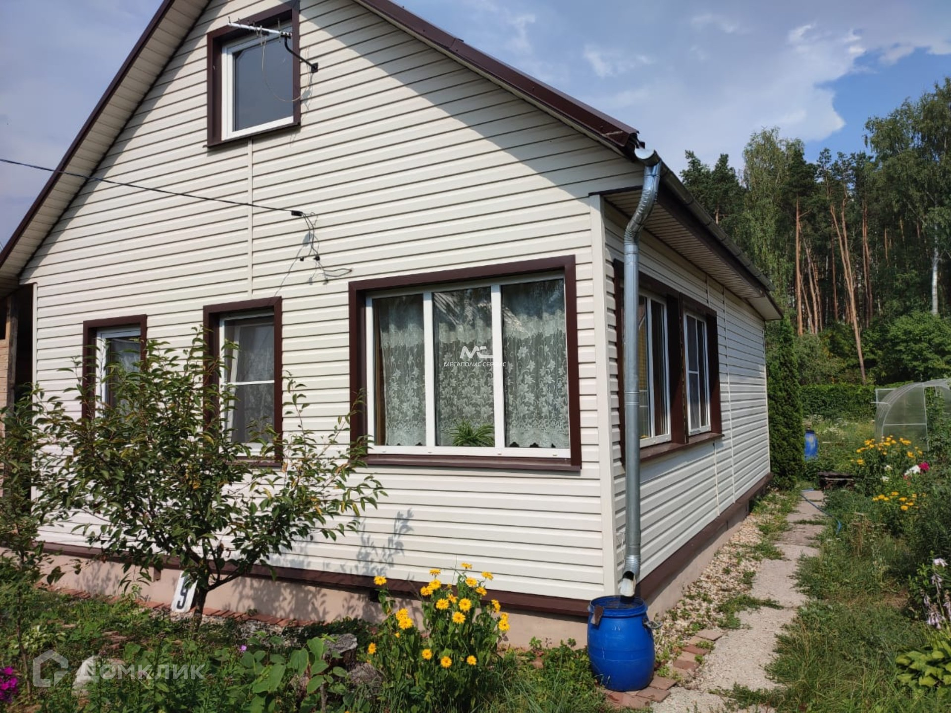 621. Продается дача в черте города Электрогорск. Дом 60 кв.м. брусовой с мансардой, снаружи утеплен и обшит сайдингом, внутри вагонка. На первом этаже большая комната с печью, кухня, терраса, веранда, на втором этаже большая комната. Фундамент монолитная плита, крыша металлочерепица, пластиковые окна. Дом отапливается печью, можно жить зимой. Участок прямоугольной формы, сухой, с участка выход в лес. На участке летний душ, туалет. Две ямы для септика забетонированы, можно строить баню. Растут молодые яблони, вишни, смородина. Есть теплица из поликарбоната 24 кв. м. В пешей доступности песчаный карьер, где можно купаться и ловить рыбу. До ж.д. платформы 14 км. 15 минут пешком. Прекрасное место для отдыха всей семьей.