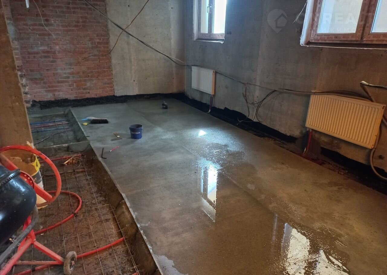 -"мокрая" стяжка 10-12см!!! только качественные материалы (пескобетон м300, сетка 100*100, фибра, пластификатор, гидроизоляционная добавка адмикс пенетрон, сверху 2слоя грунтовки для укрепления). не позволили себе экономить и делать полусухую, так как делали ДЛЯ СЕБЯ.