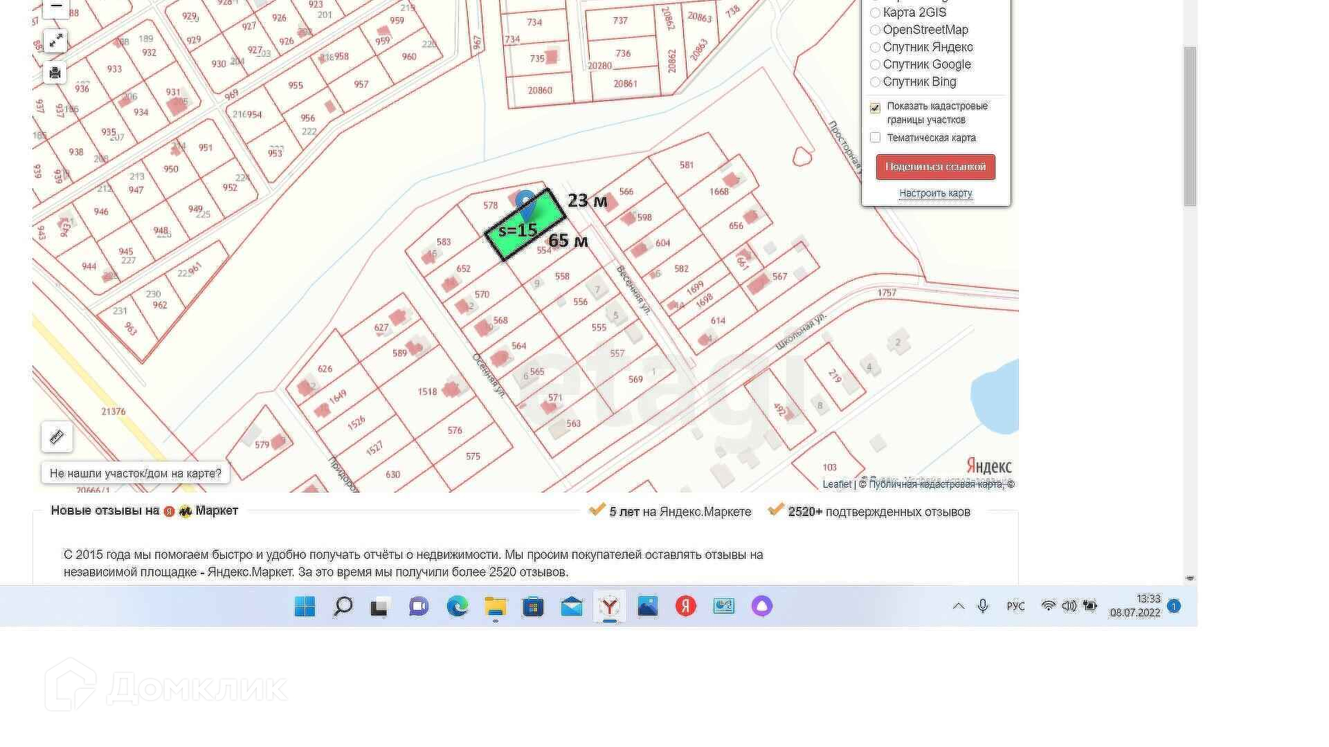 Площадь участка 15 сот.
