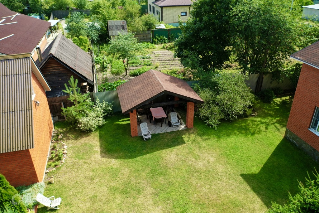 Участок ИЖС, ухожен, 10 сот., огорожен капитальным кирпичным заобром на собственном фундаменте с воротами и асфальтированной площадкой для машины, забетонированы пешеходные дорожки, обложены брусчаткой , газон, межевание сделано, много насаждений, есть кирпичная беседка, уличный бассейн, уличный туалет.