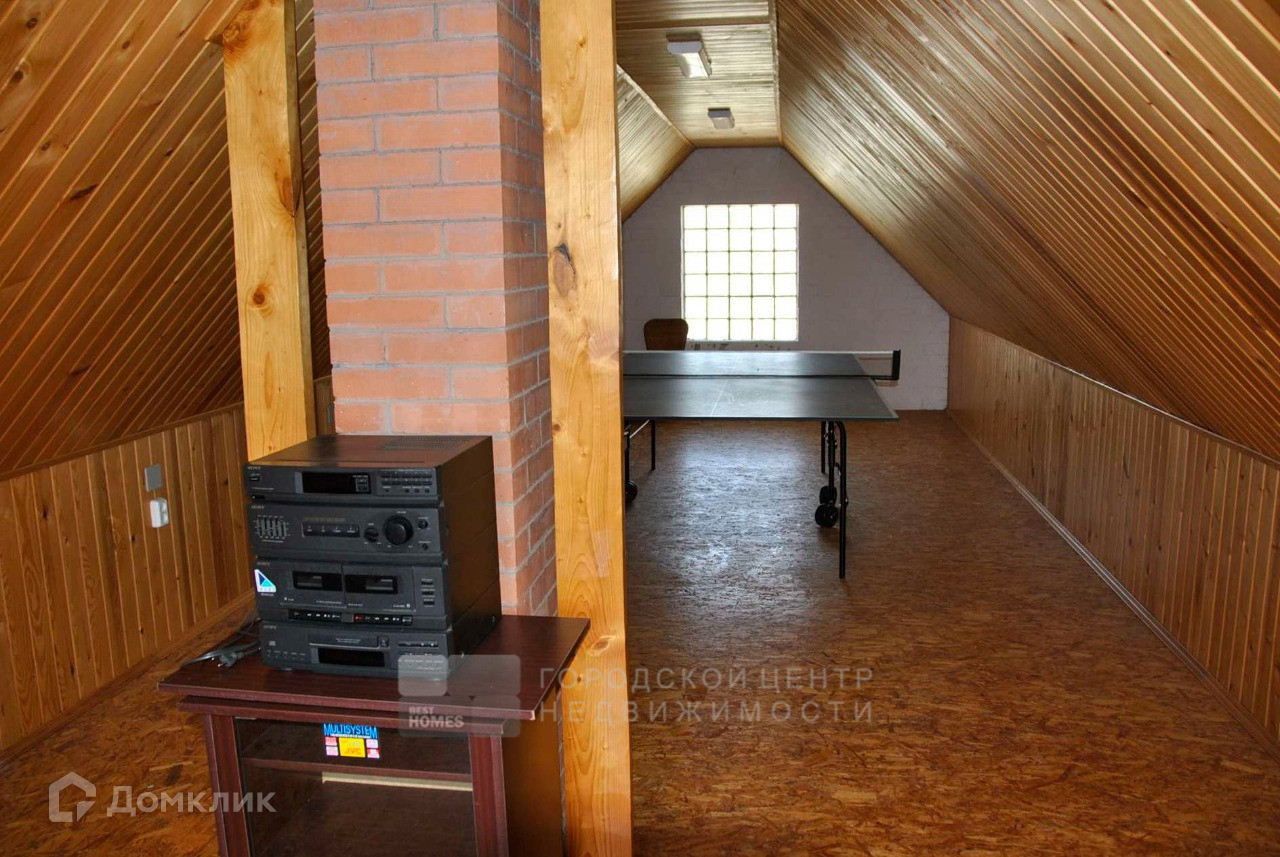 Есть подсобные помещения. Гараж на 2 машины со смотровой ямой, большим подвалом и автоматическими воротами. Сауна. Над гаражом и баней помещение c настольным теннисом.