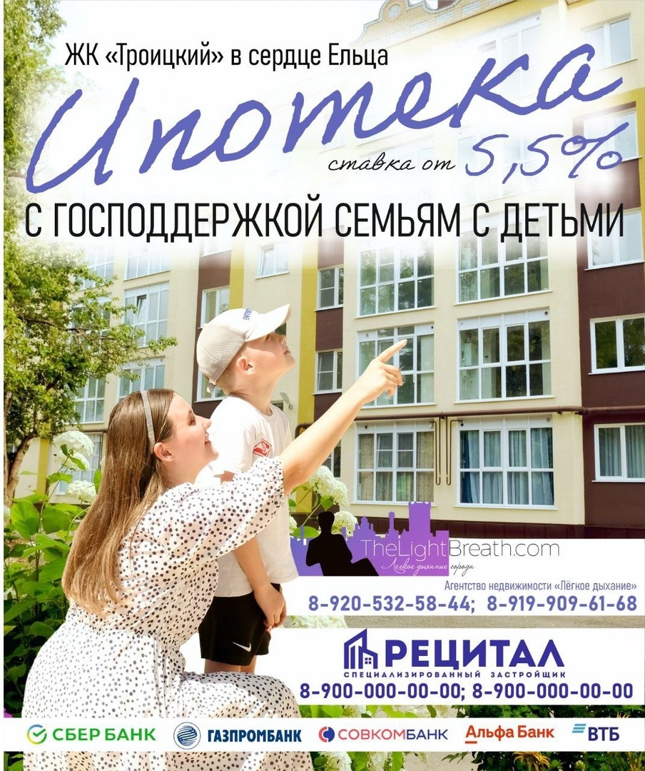 Принимается материнский капитал и другие субсидии (молодая семья, военная ипотека и т.п.)
