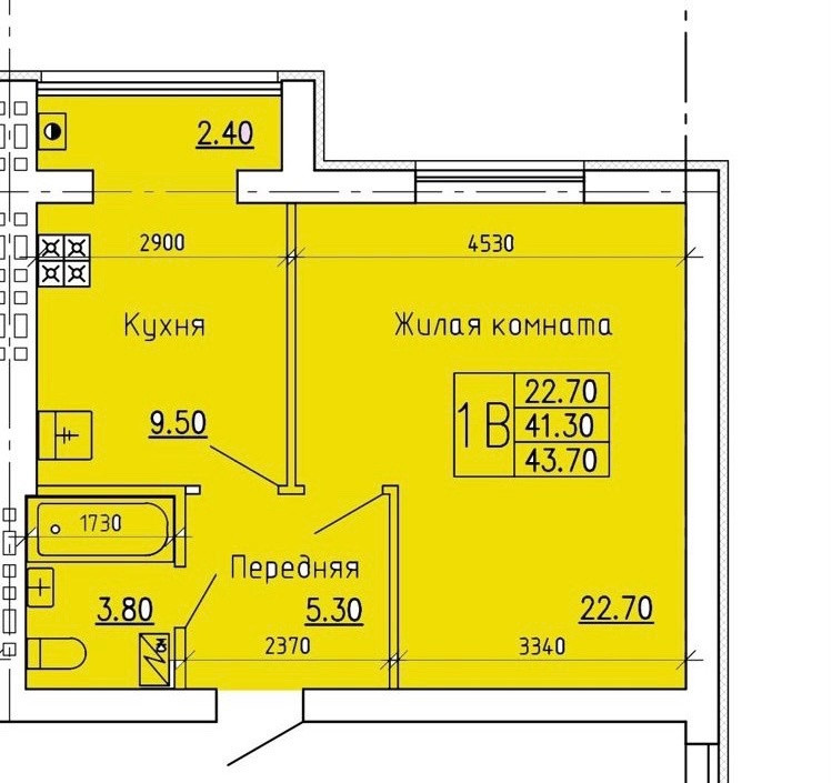 Общая площадь 44 м2