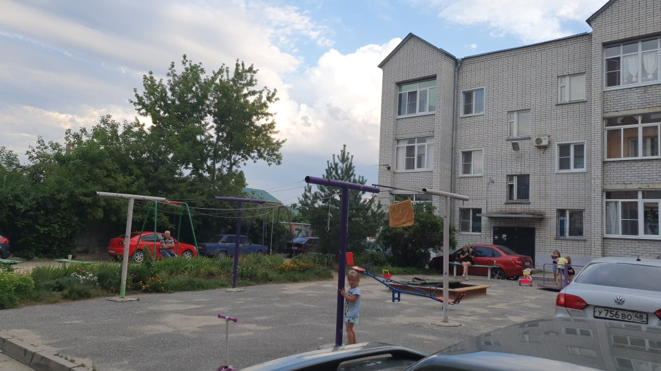 Во дворе есть парковка и детская площадка