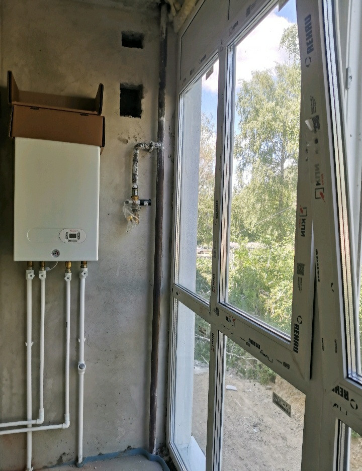 Двуxконтуpный итальянский котeл Fonditаl Мinоrса с закрытой камерой сгорания – результат работы Оcобой Экономичеcкой Зоны «Липецк» вынесен в лоджию квартиры.