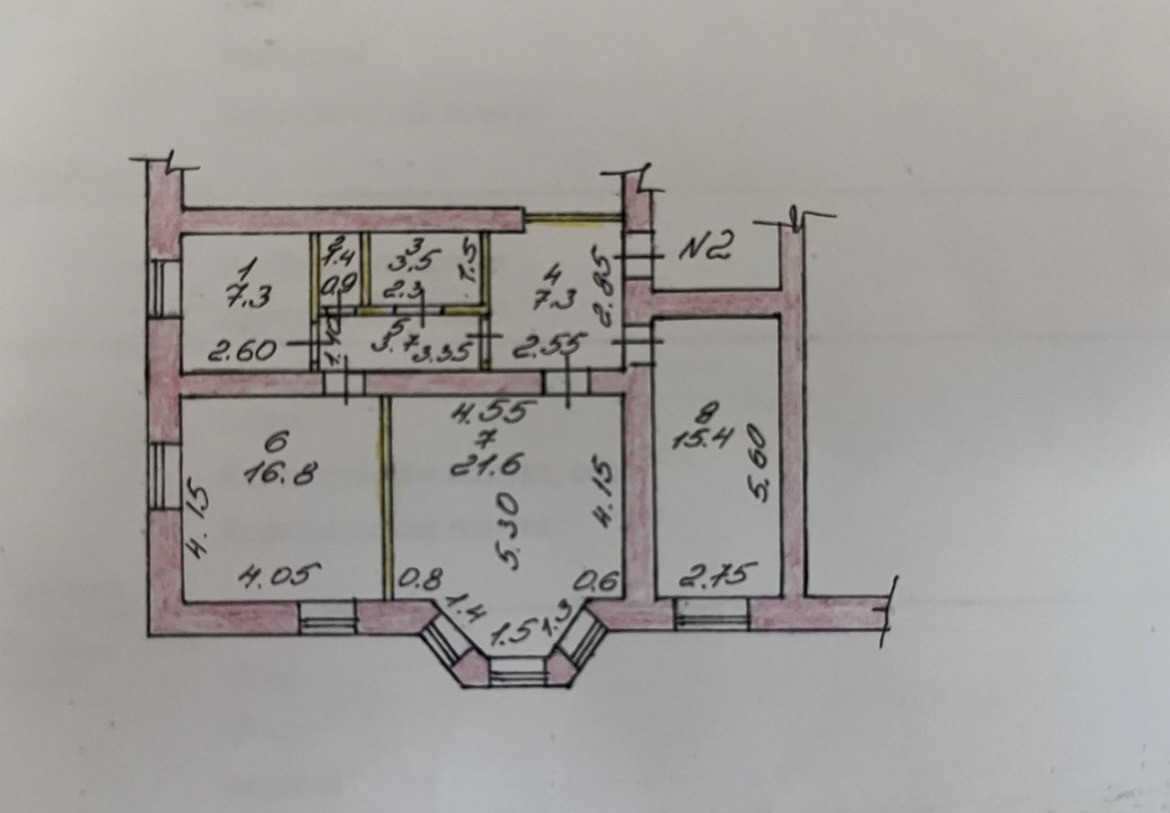 Жилая площадь 53.8 м2