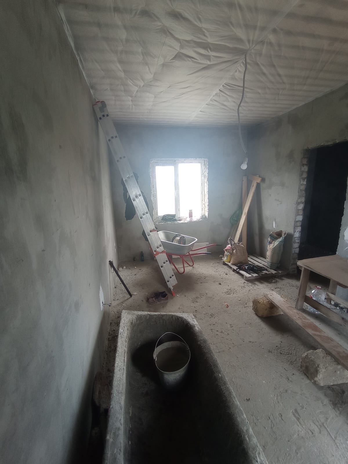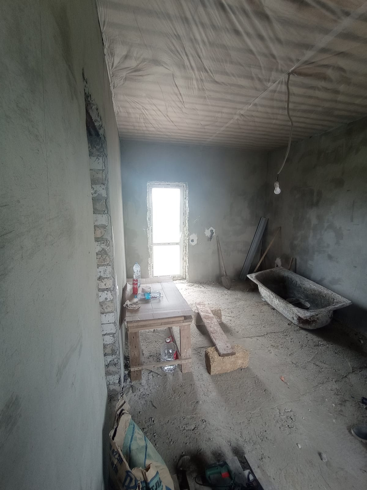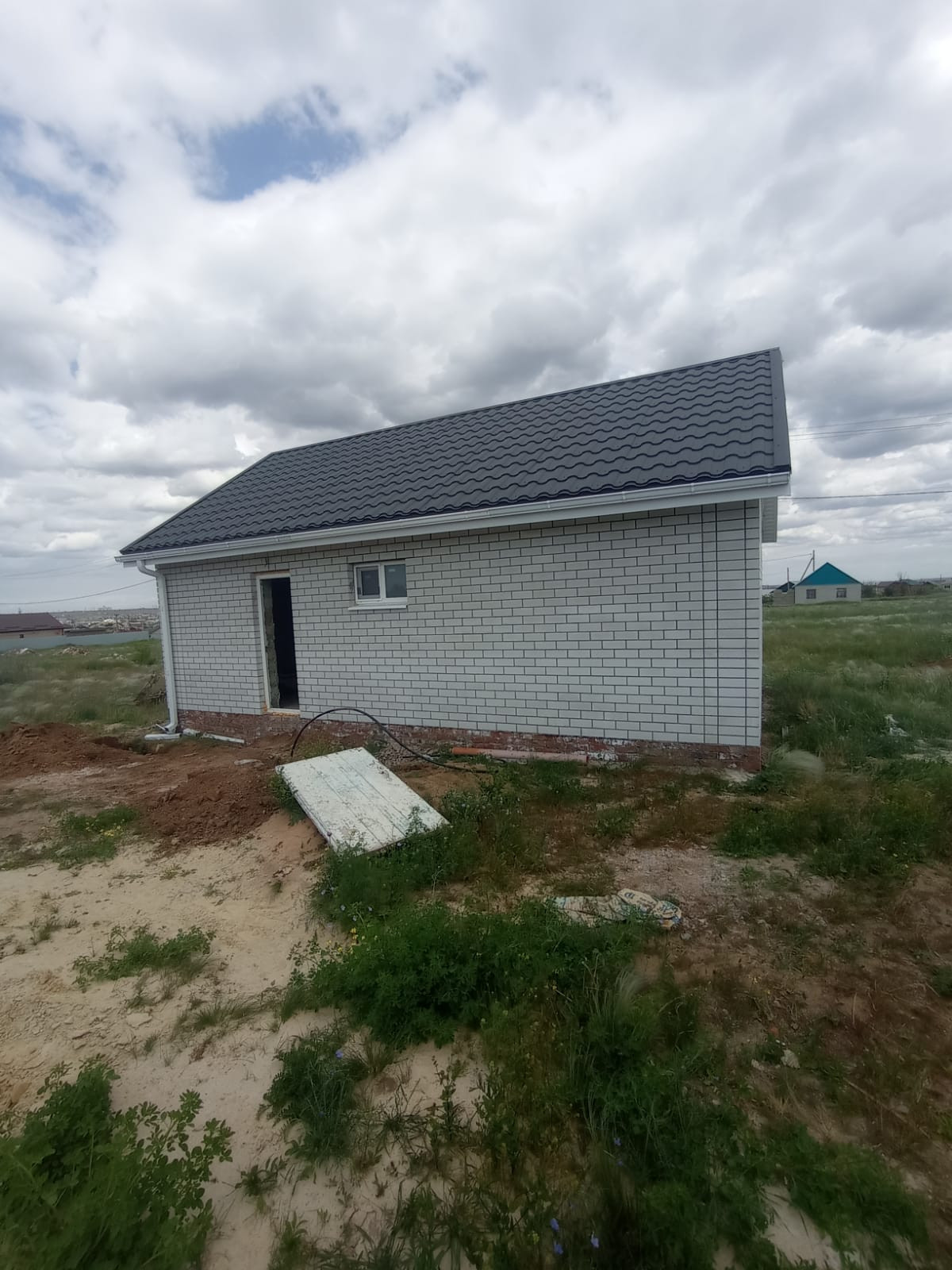 Дом 6х9, оштукатурен, залиты черновые полы, окна rеhау 2х камерный стеклопакет, двери с терморазрывом цоколь Утепленный, электричество, газ, бассейн во дворе 4,5м3, участок ровный, 6 соток, свободный выход в 3 стороны. Много места для строительства.
