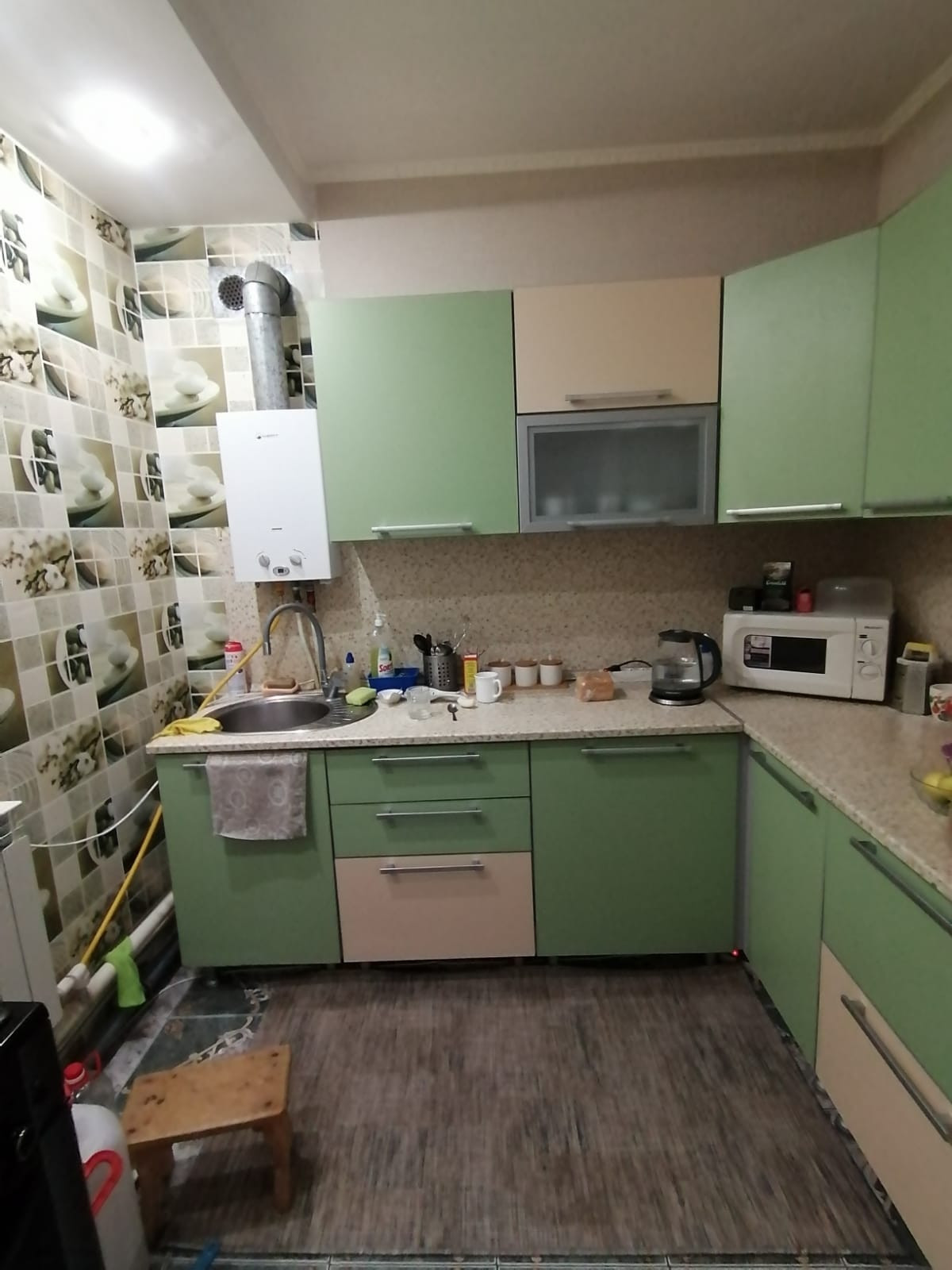В доме остается встроенный кухонный гарнитур, встроенный шкаф-купе.