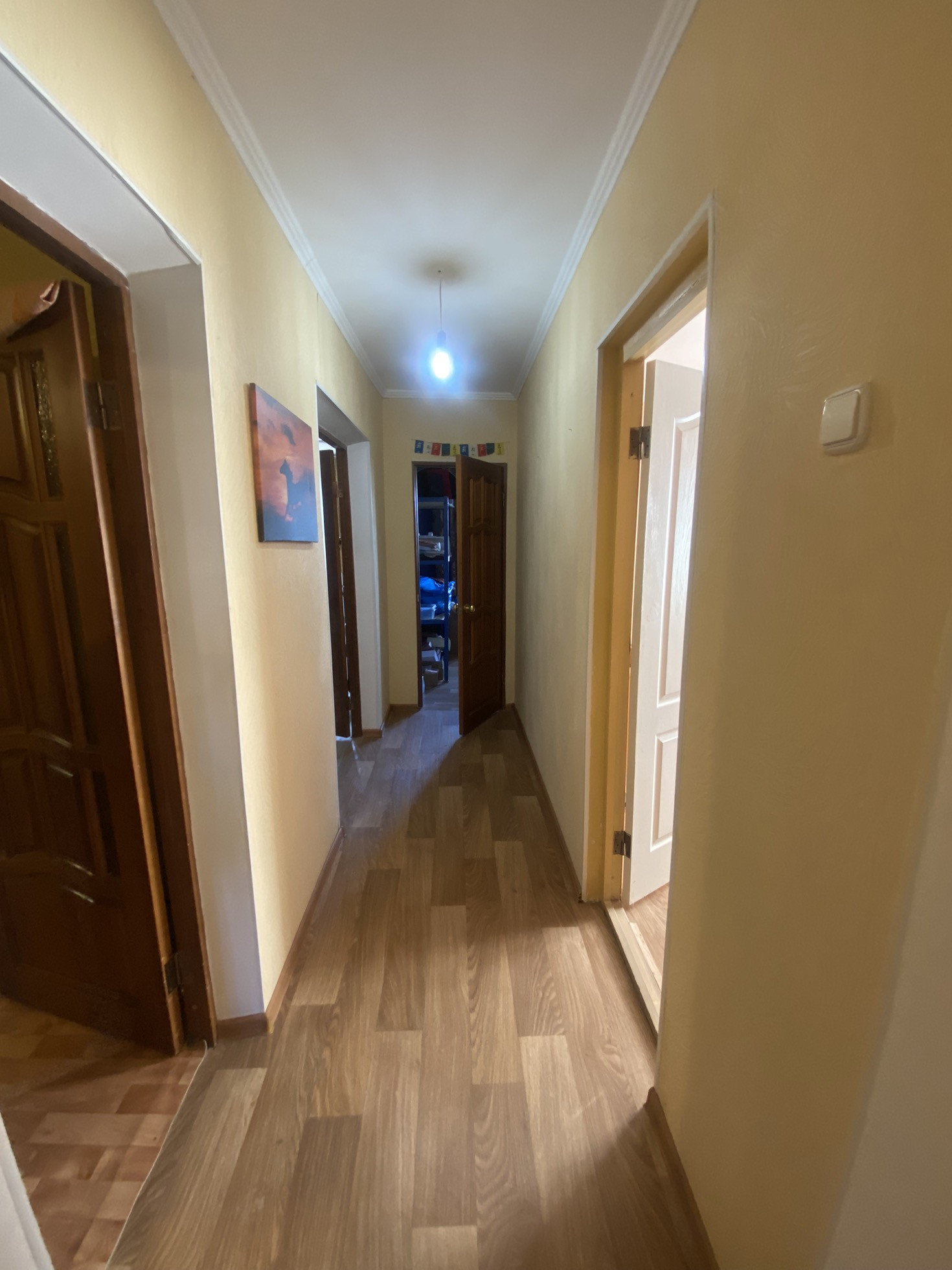 В хорошем состоянии, 4 комнаты, кухня, санузел, кладовая, коридор.