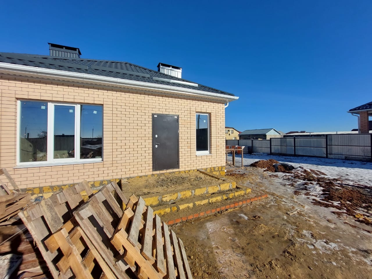 Крыльцо спереди и площадка под веранду в процессе работы