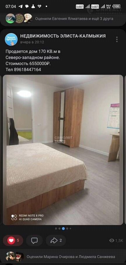 В т о р о е  предложение: Обмен выше описанного дома на 2-х комнатную квартиру с доплатой, предпочтительно 2-3 этаж, КЛ, рассматриваемые микрорайоны 8, 9, 2, 7, 6, 101, центр.