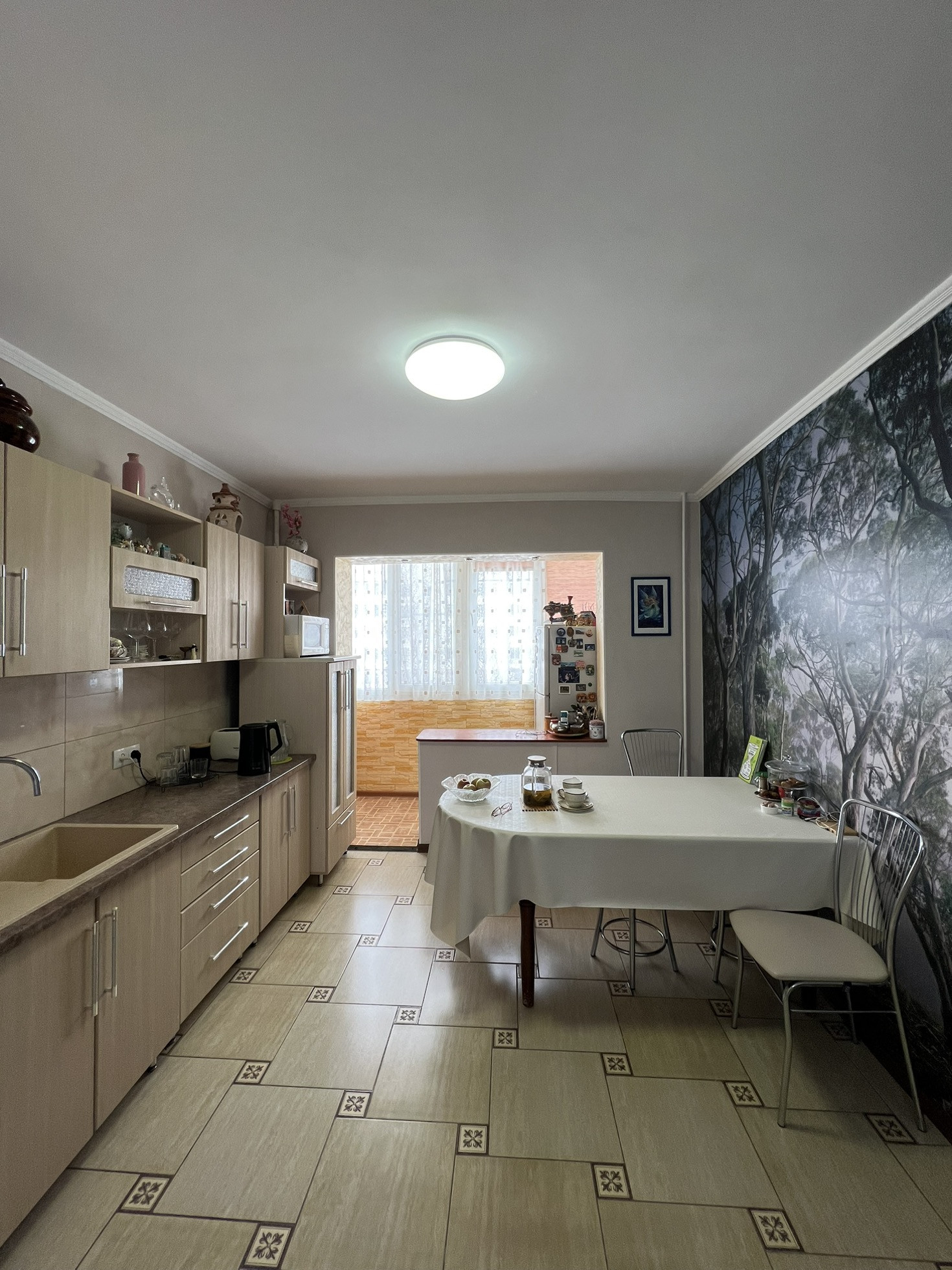 На полу ламинат, теплый пол на кухне на лоджии.