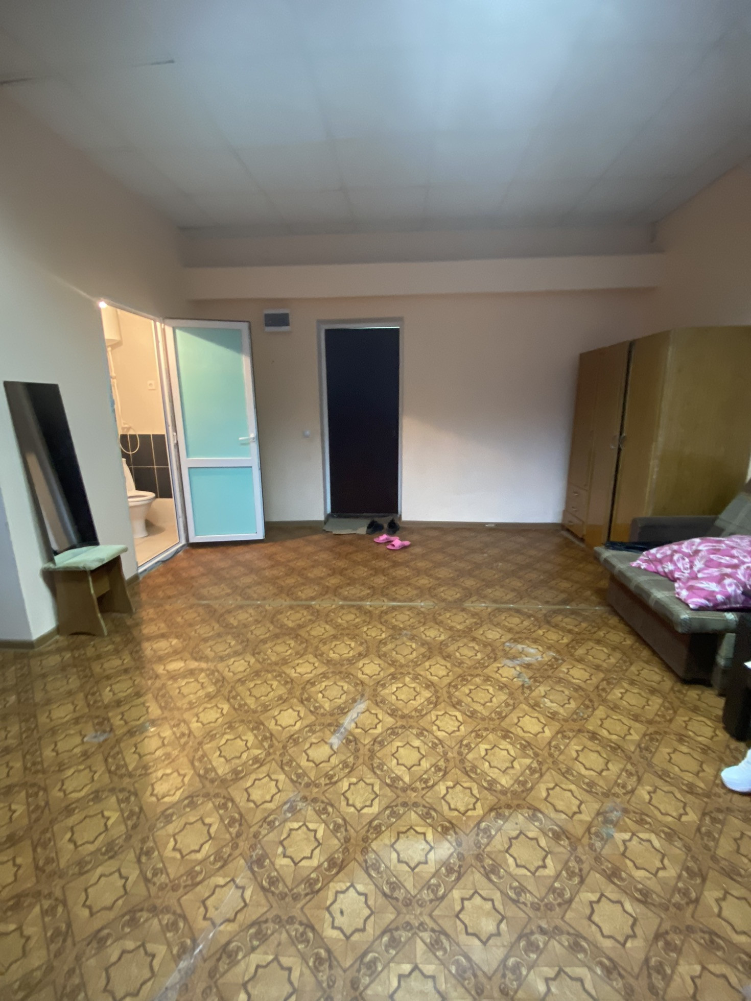 Продается уютная студия на первом этаже с косметическим ремонтом.Окна пластиковые,линолеум,с/у совмещен в ремонте.Развитая инфраструктура школа,детский сад,магазины,остановка