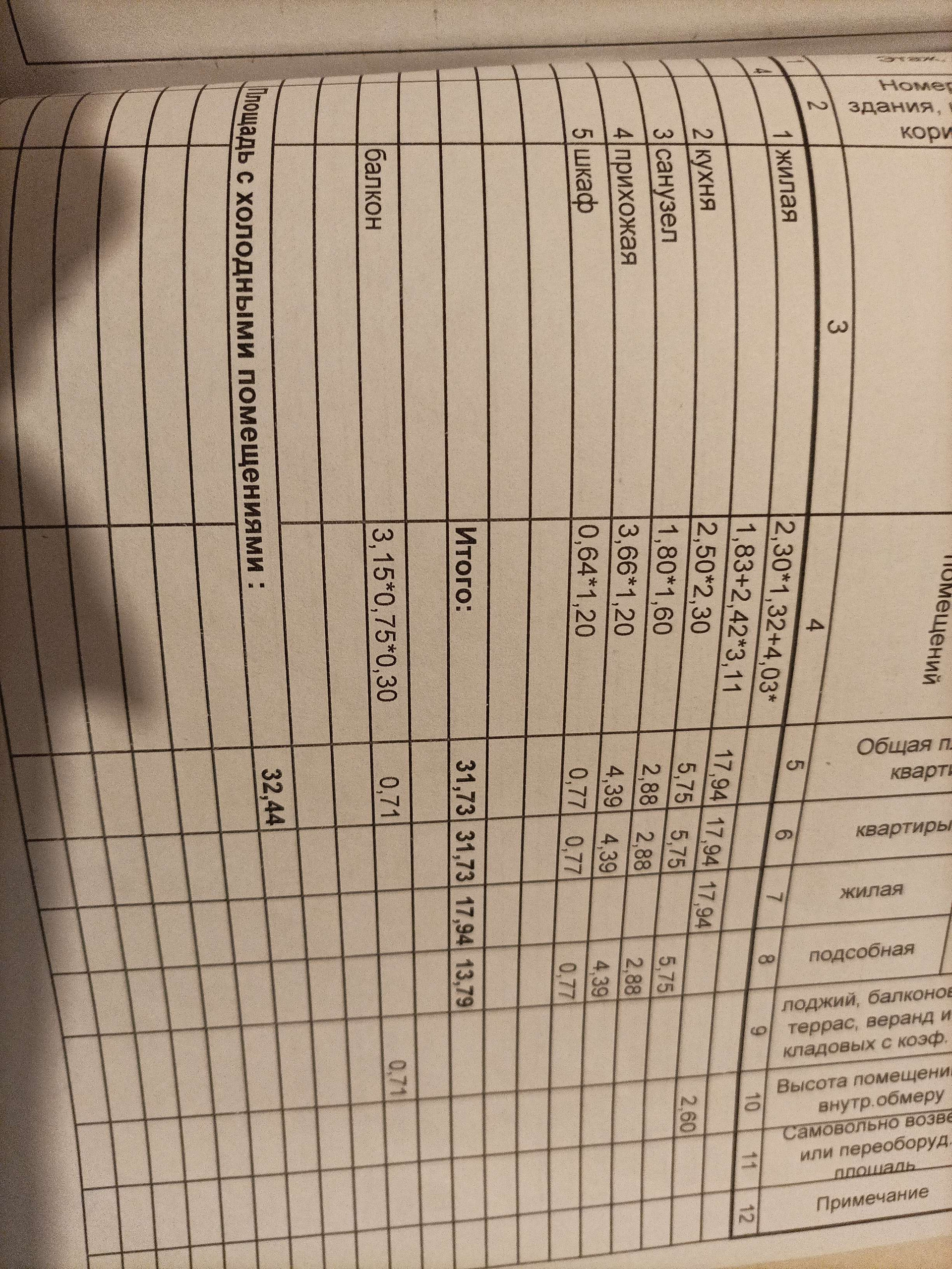 Общая площадь 32.44 м2