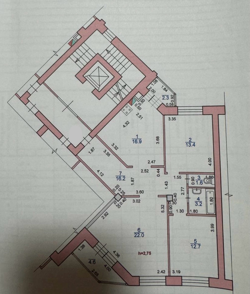 - балкон : 2,3 м2;