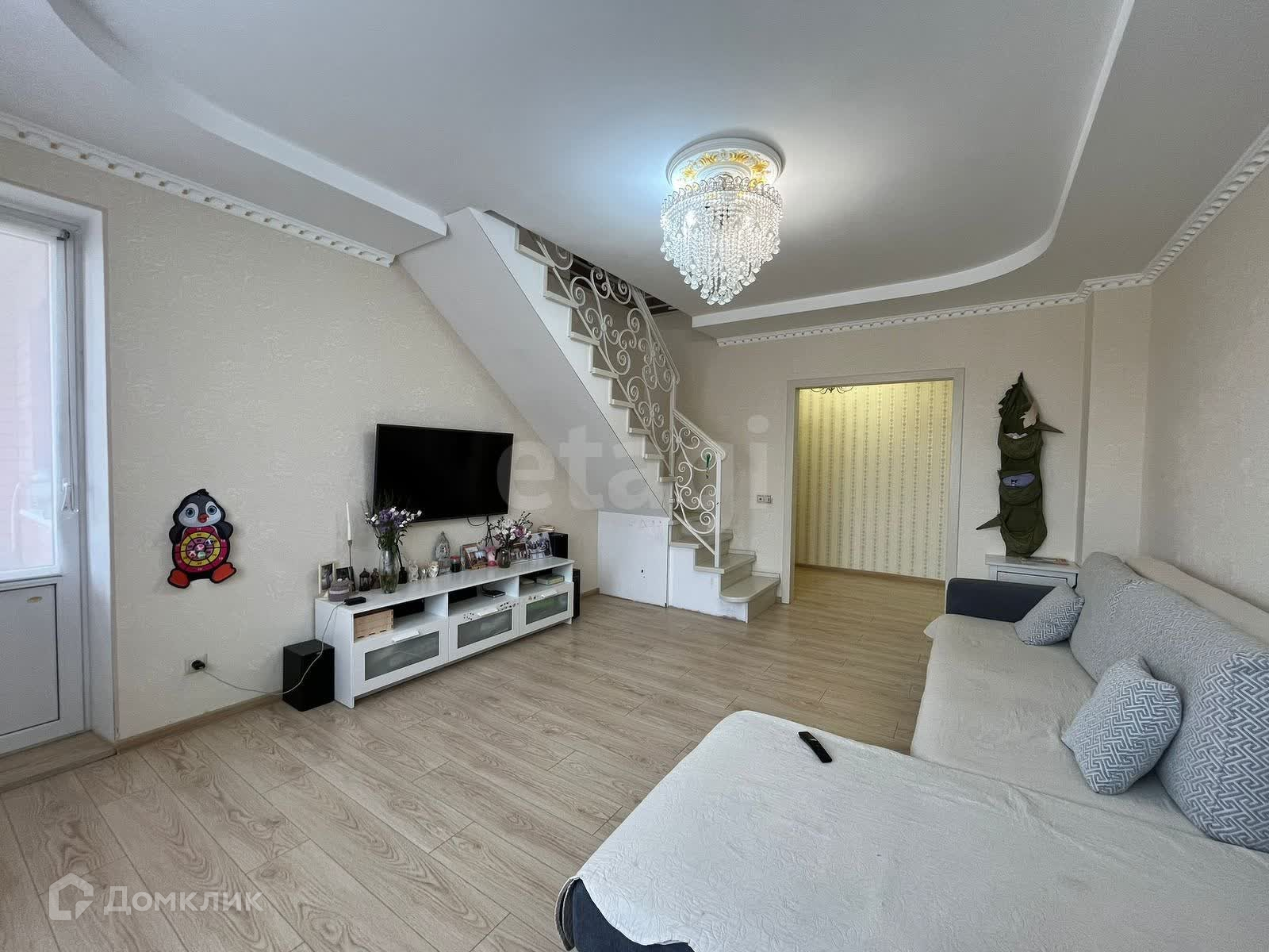 Лестница из железного каркаса, обшита дорогим деревом, межкомнатные дверы, ламинат всё выского качества, ремонт выполняли для себя, не экономили, в туалете инсталляция, на кухне, в коридоре и в ванной проложен теплый пол.