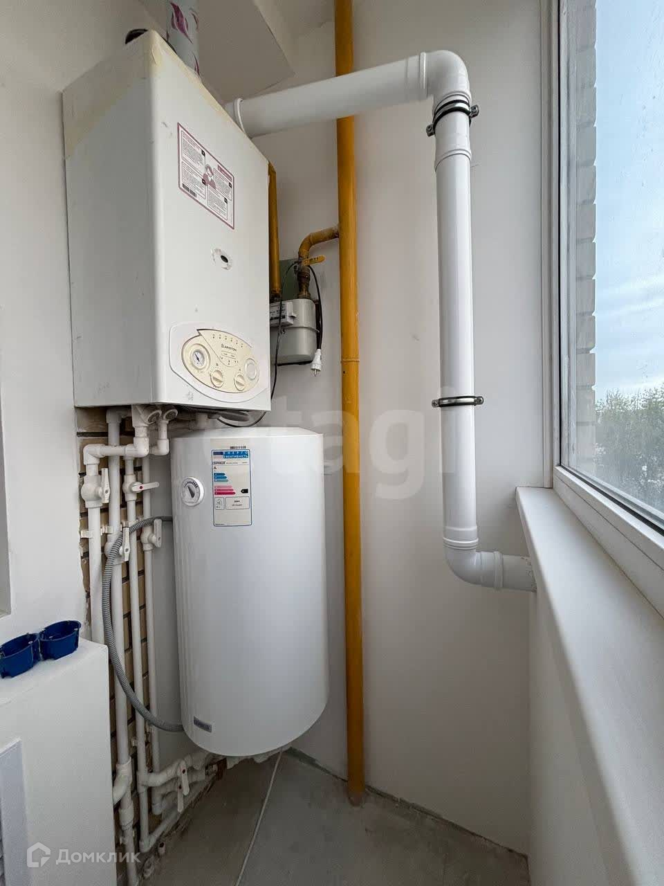 Отопительный котел вынесен на лоджию и узаконен, что освобождает пространство внутри квартиры. Дополнительно установлен водонагревательный бойлер, а новые электрические автоматы обеспечивают безопасность и надежность. В санузле установлен общий фильтр на воду и датчик давления, что гарантирует комфортное использование.