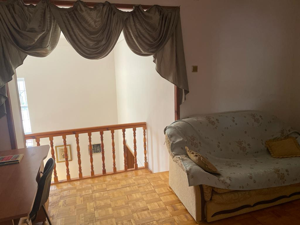 высокие потолки, большие окна, просторный. В Доме проведён полный косметический ремонт, замена отопления на современное качественное оборудование, все окна на стеклопакеты высокого качества, крыша металлочерепица, водостоки, утепление чердака. На 1 этаже современная открытая планировка кухни со столовой, гостиный зал с камином и гостевая комната или кабинет. На 2 этаже 3 отдельные спальни. Ванные комнаты на каждом этаже, просторные балкон и веранда. Имеются все коммуникации. Обратите внимание на большую площадь участка, где можно построить ещё один Дом. Развитая инфраструктура. Есть 2 бассейна, одному из них во дворе необходим ремонт в современном индивидуальном стиле. Мангал во дворе. Во дворе виноградник, плодовые и сосновые деревья. Летом комфортно проводить время во дворе: жарить шашлыки, собирать виноград, варить вишневое варенье, купаться в бассейне, дышать сосновым воздухом.