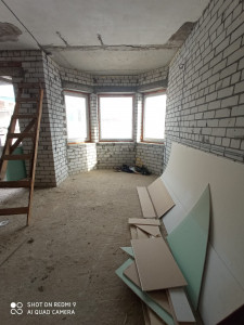 Потолок плиты перекрытия везде, полы залиты, проводка раскидана, все коммуникации заведены