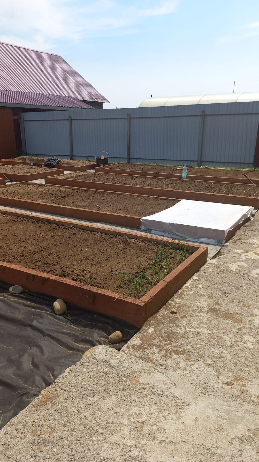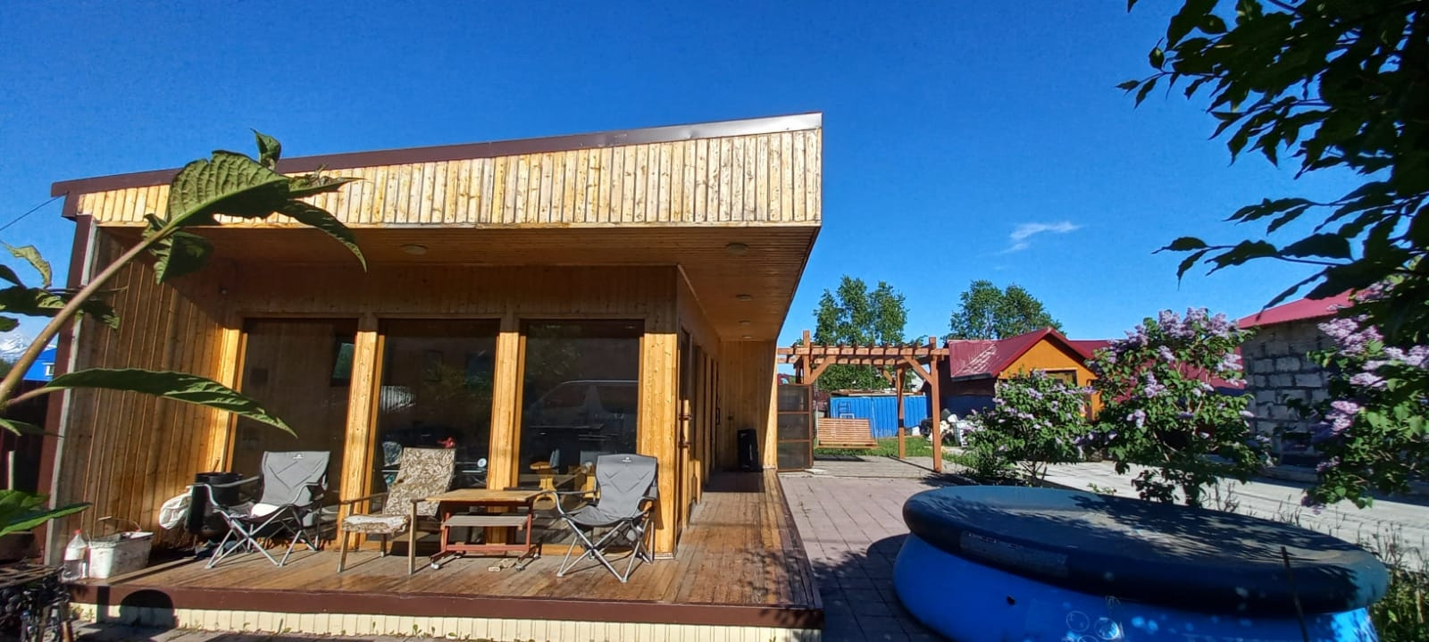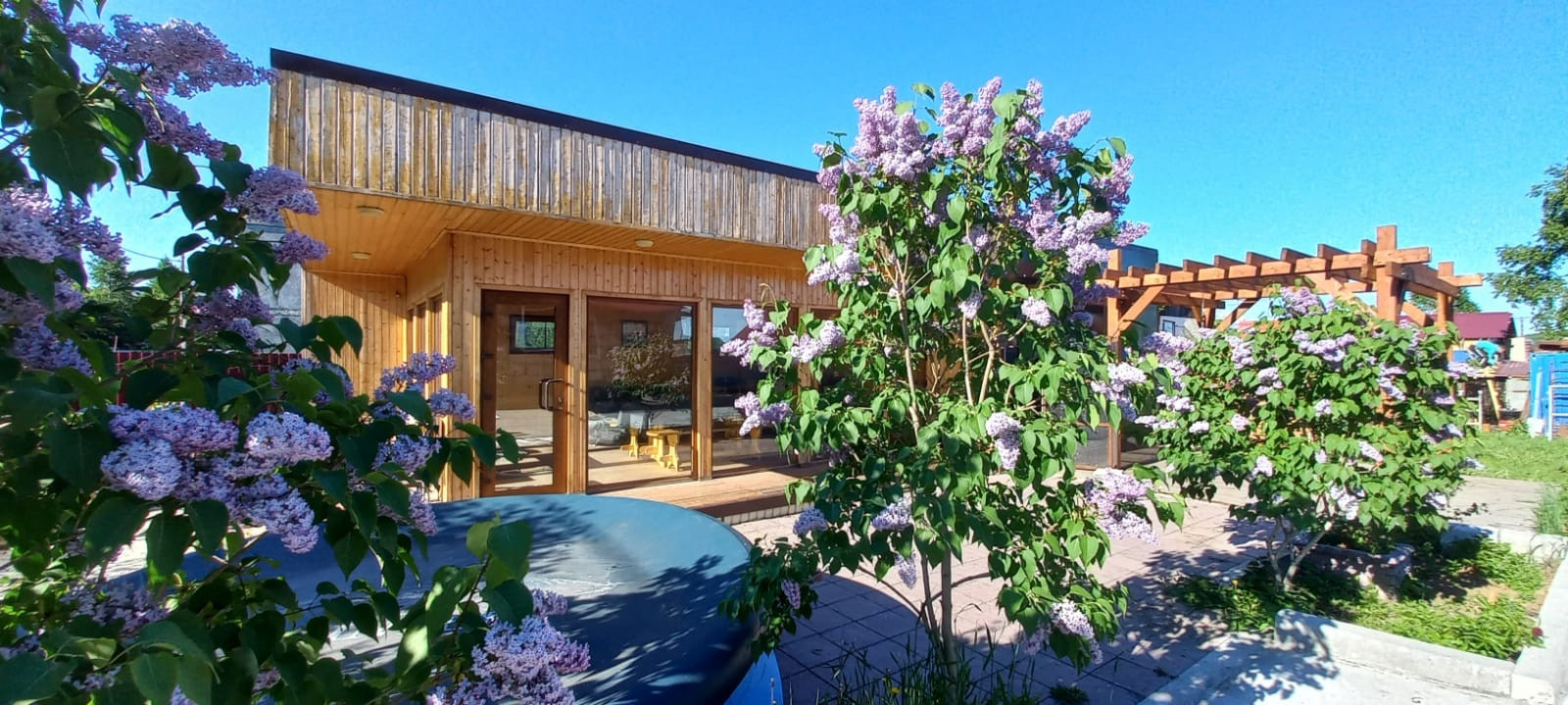 На участке большая отапливаемая беседка, 4 гаража, две теплицы (одна из них 30 на 5 метров), облагороженные грядки. Много яблонь, вишни, сирени.