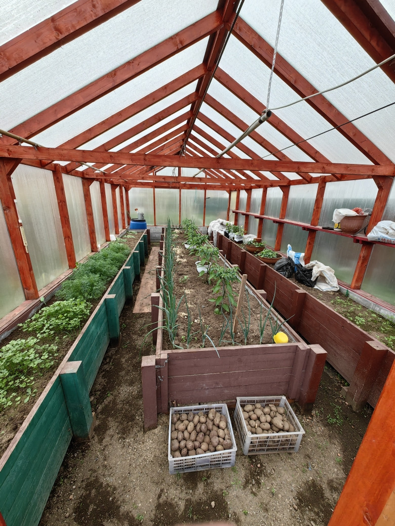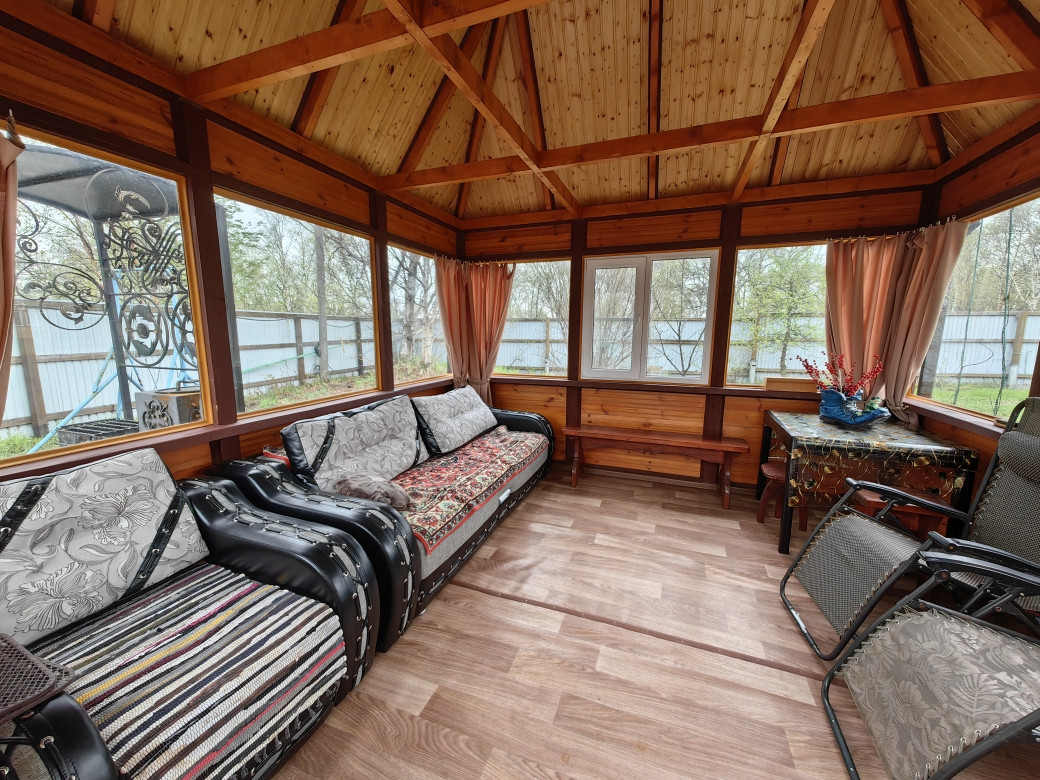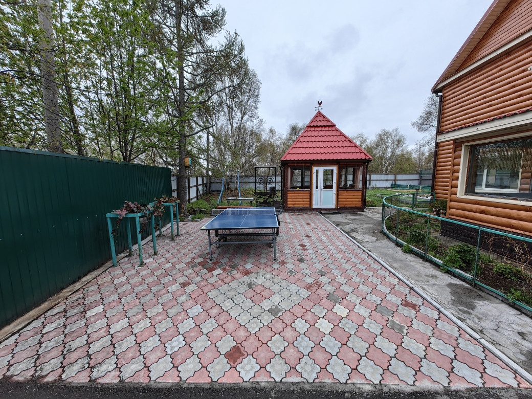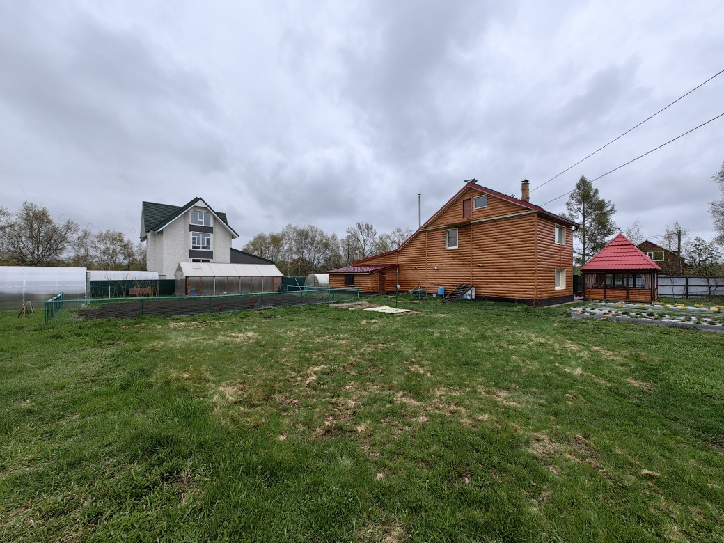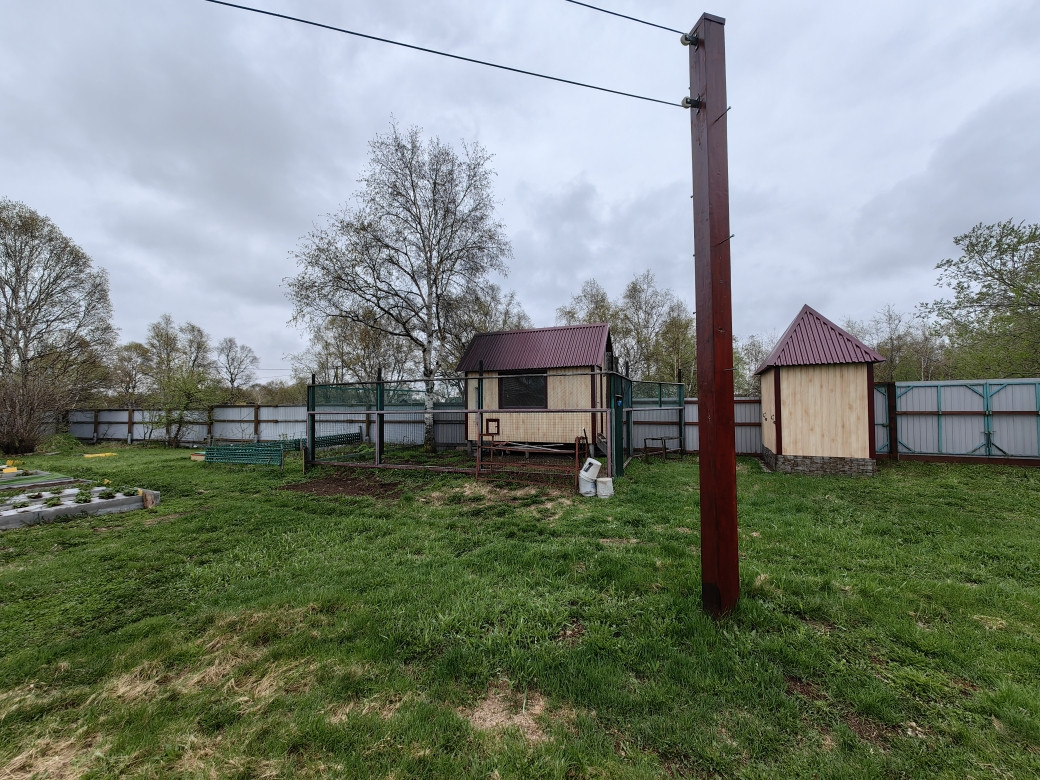 Участок ухожен и облагорожен, перед домом территория вымощена тротуарной плиткой и асфальтом, установлена отличная теплая беседка с мангальной зоной. За домом расположена баня с бассейном, курятник, склад для инвентаря, летний туалет, три теплицы (одна из которой нестандартная, с высокими грядками грунт в которых имеет электрический подогрев), а так же грядки для посадки.