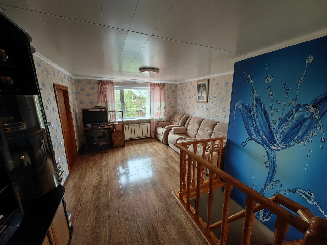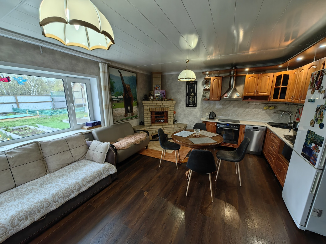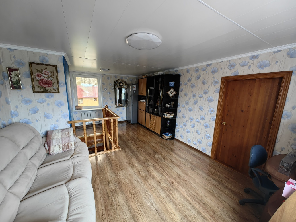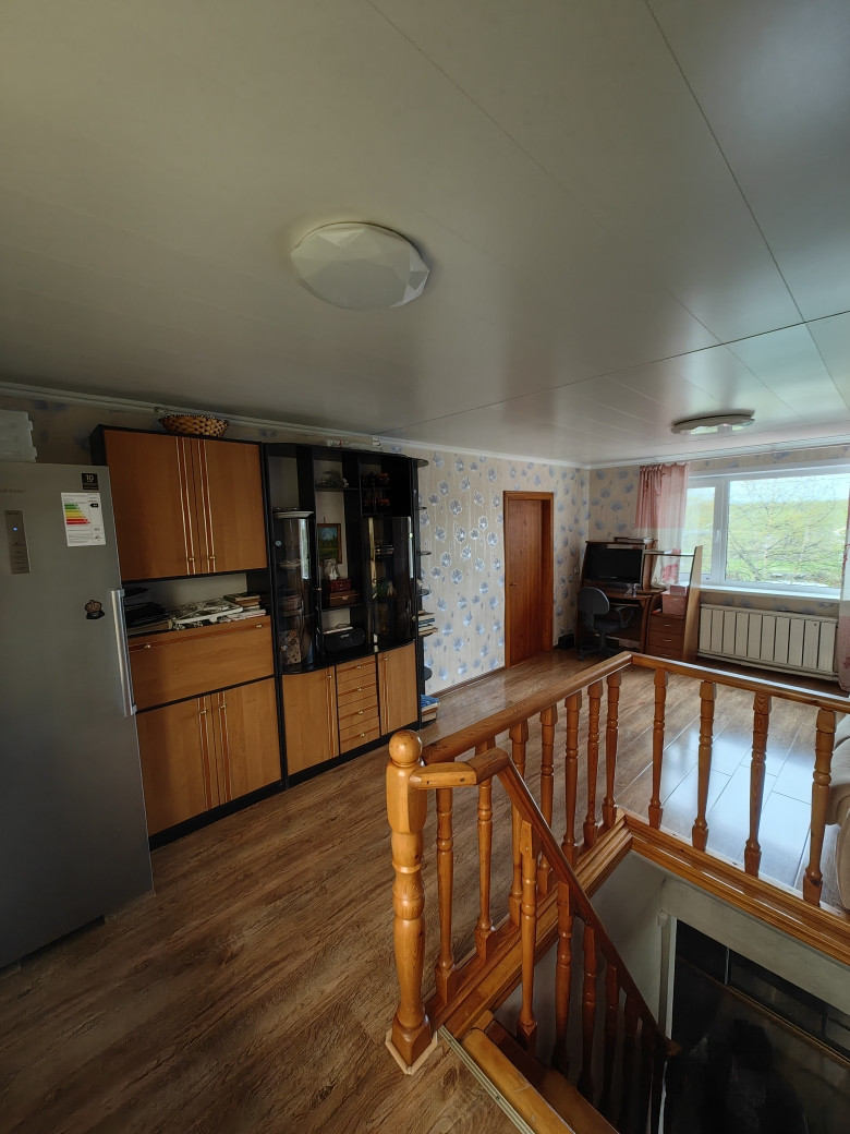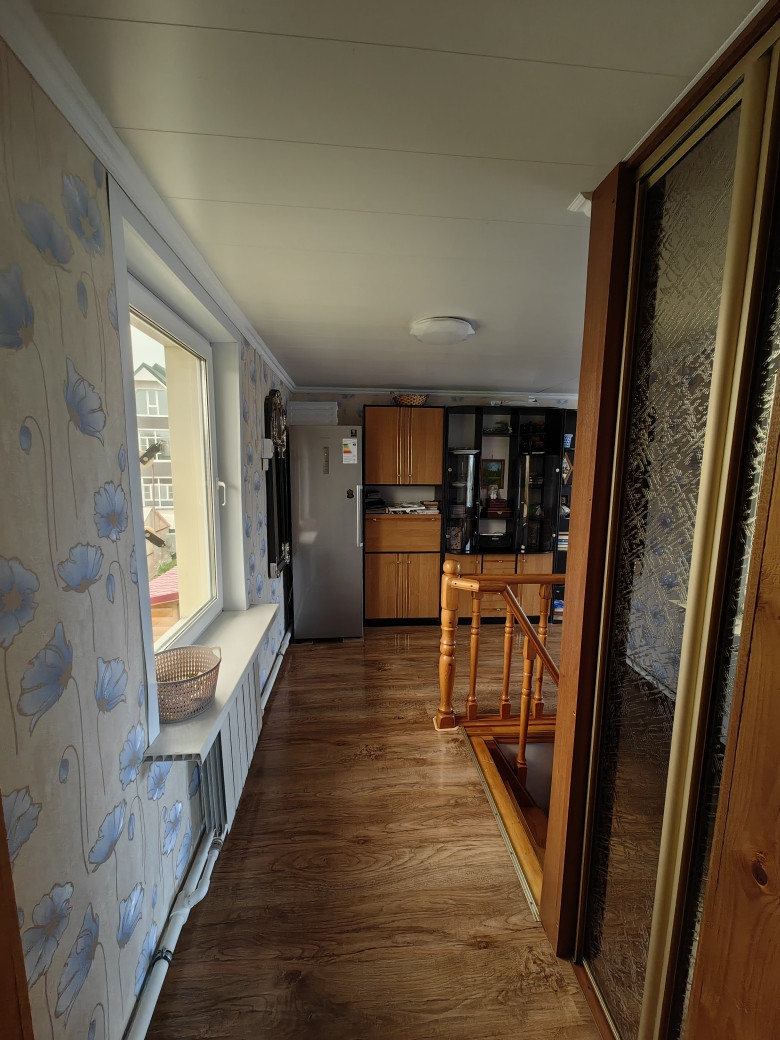 Первый этаж дома из шлакоблока, на нем расположены кухня-гостиная, туалет/ванная, лестница на второй этаж, подсобные помещения(прихожая, бойлерная, веранда) и выход в гараж, в котором так же расположен подвал;