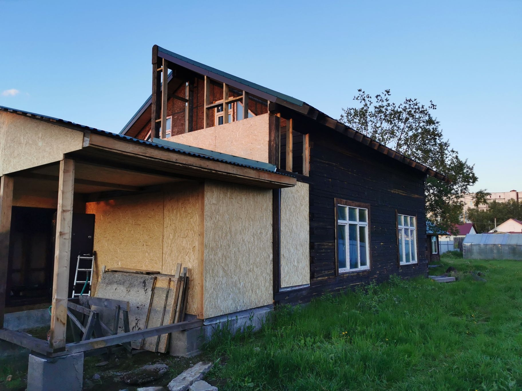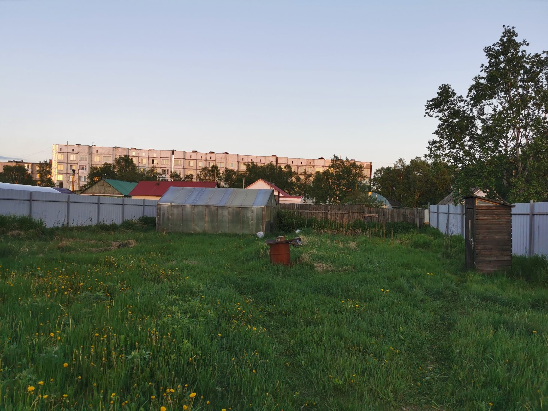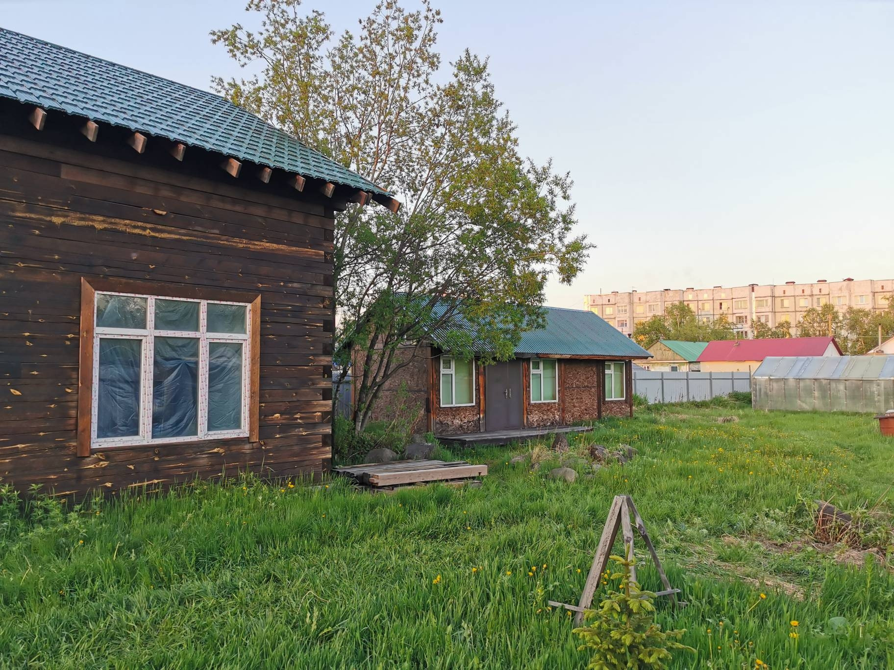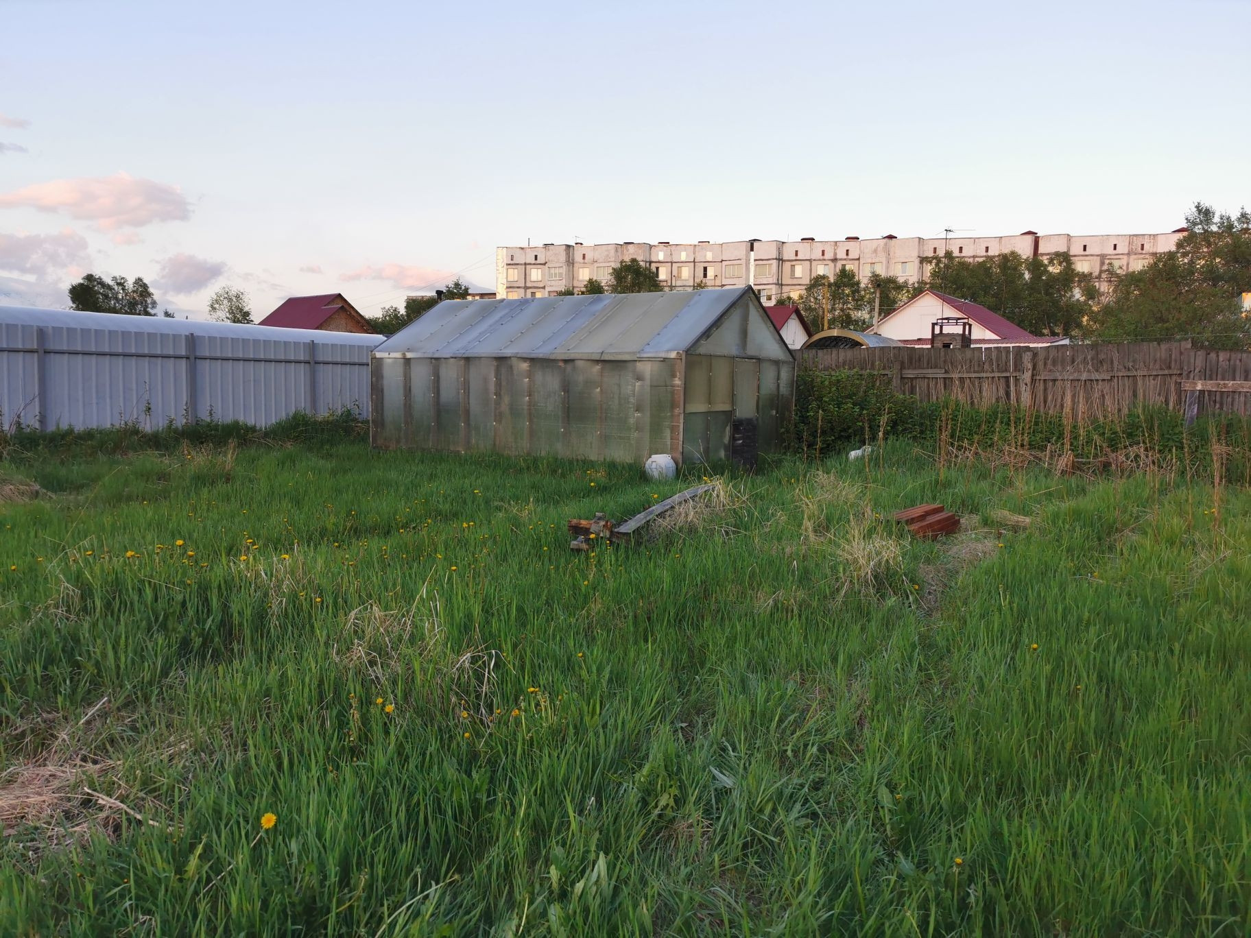 На участке строение 5х10 метров с подвалом, теплица 4х8 метров.