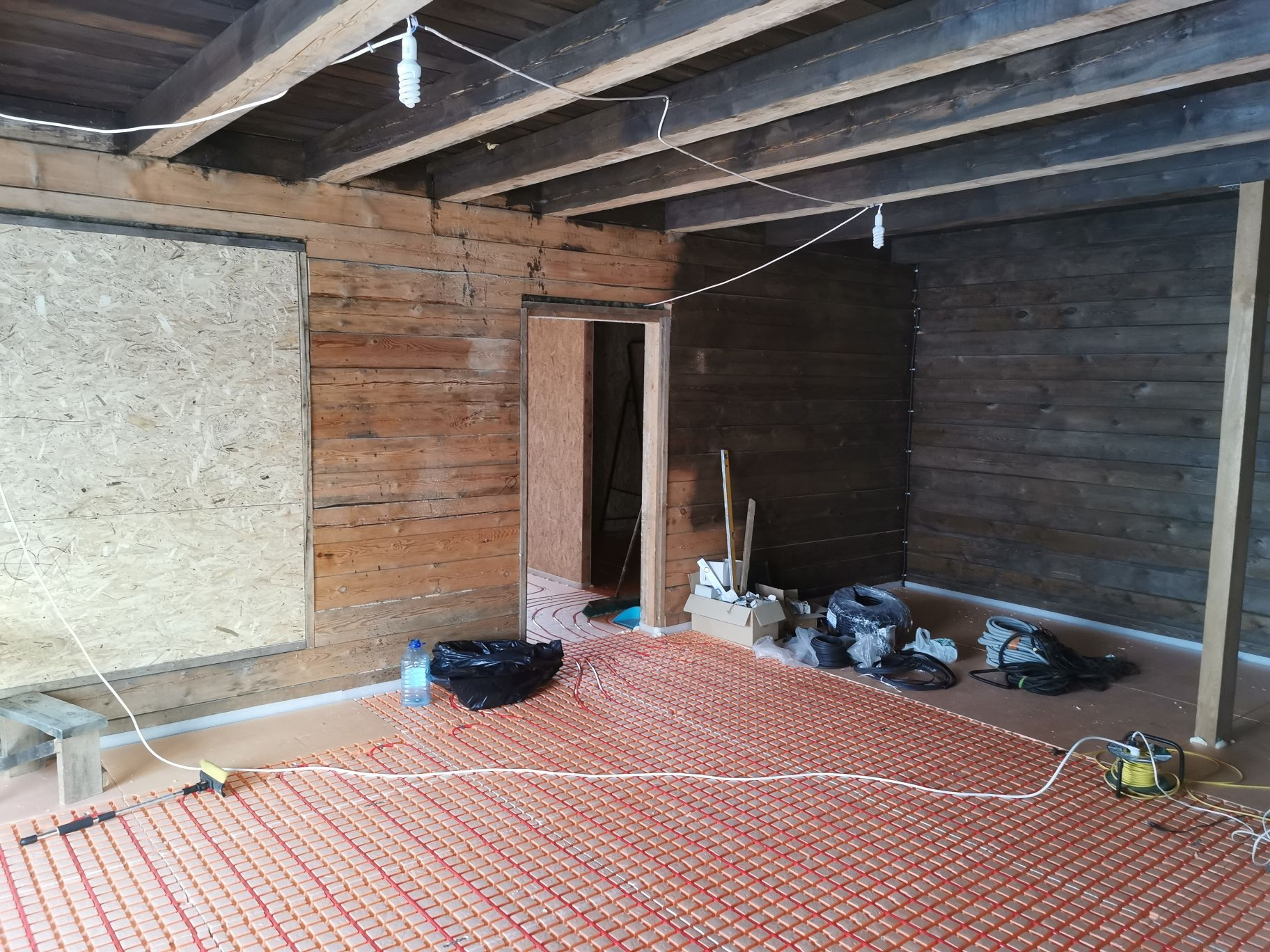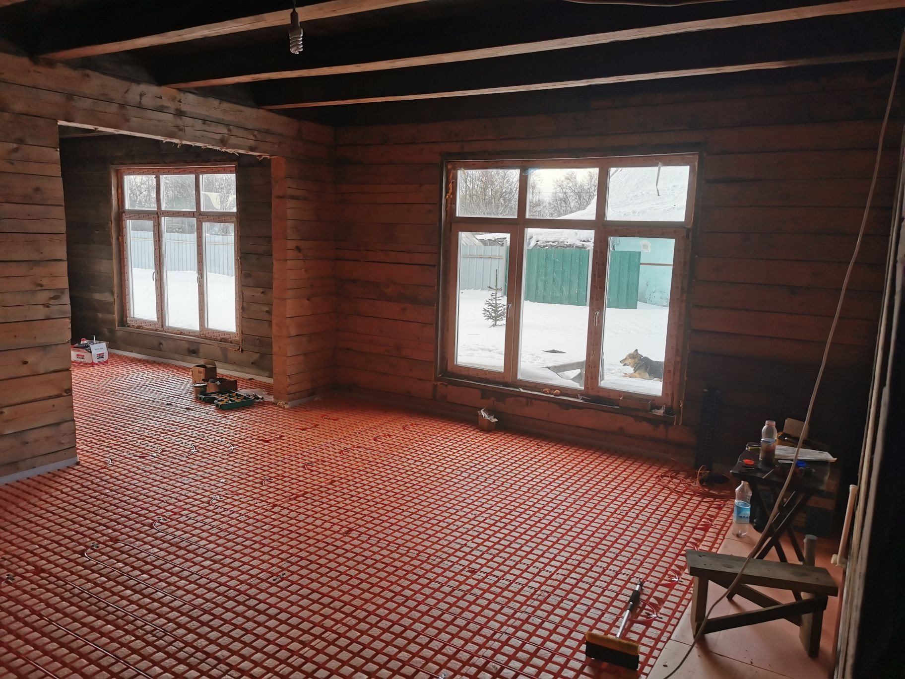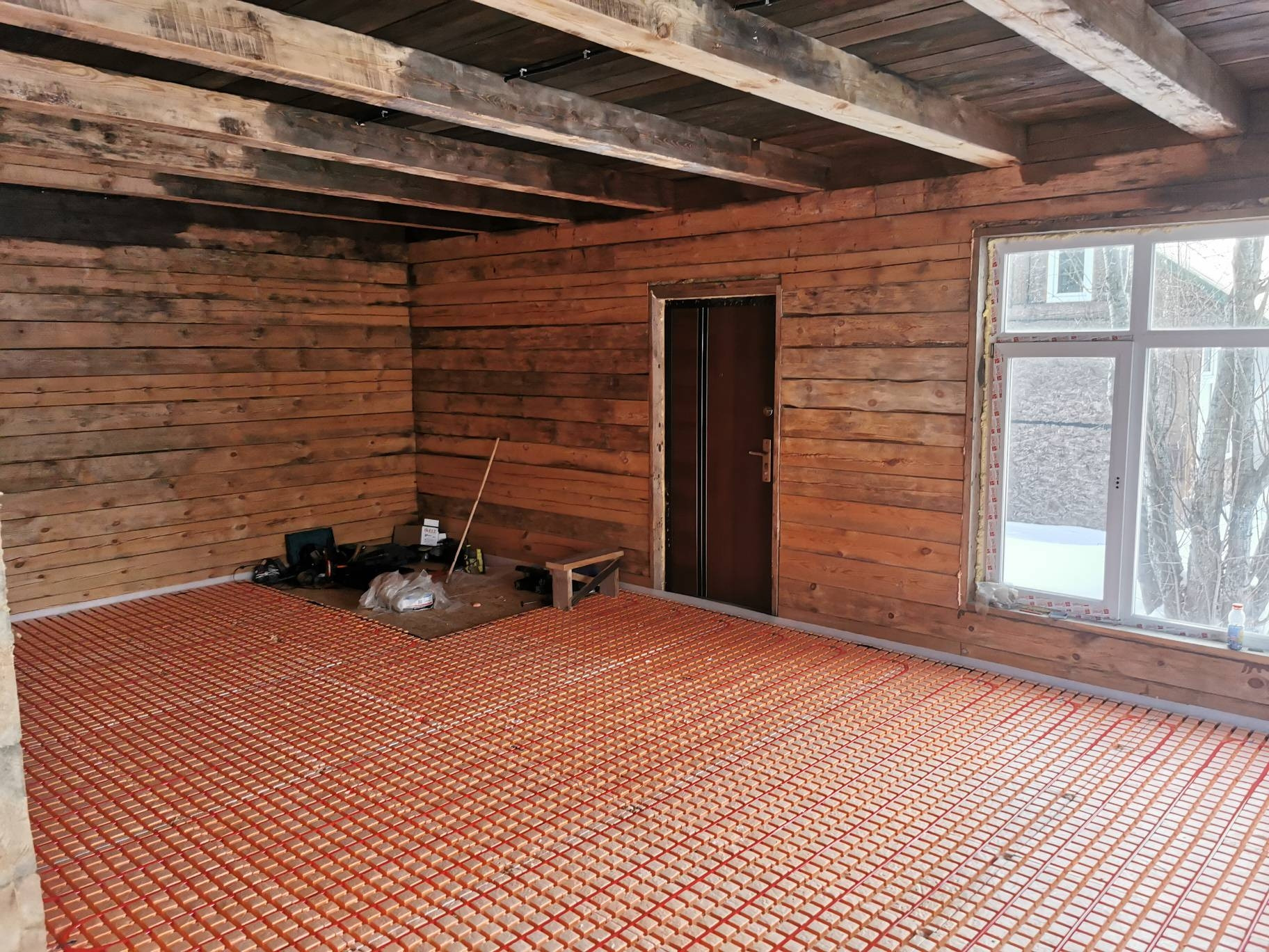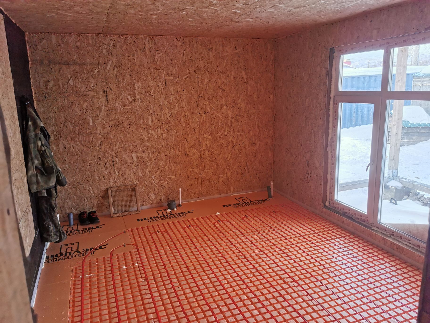 Имеются все коммуникации (вода, свет, канализация "септик", отопление тёплые полы).