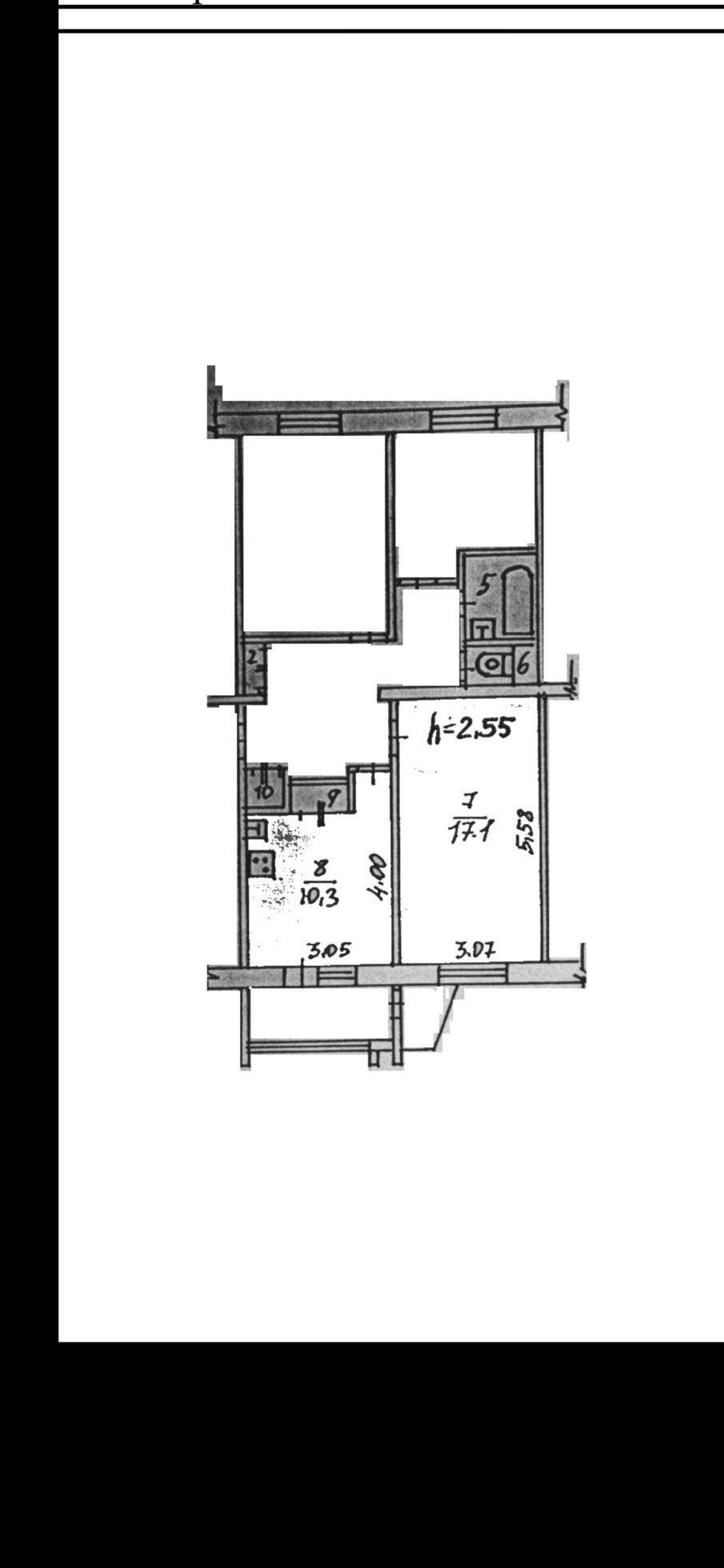 Высота потолков 2.55 м