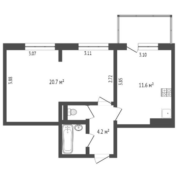 Санузел 1 раздельный