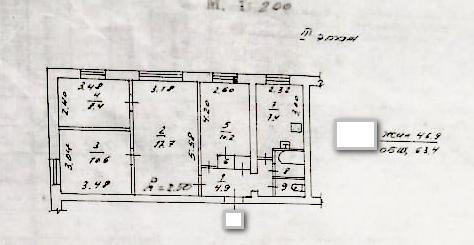 Жилая площадь 46.9 м2