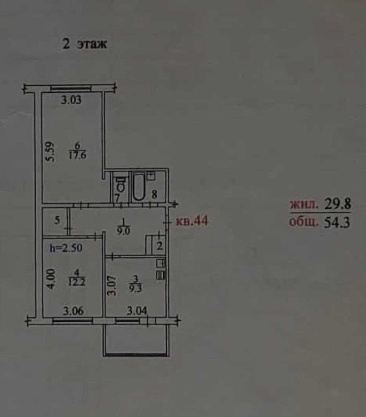Общая площадь 54 м2