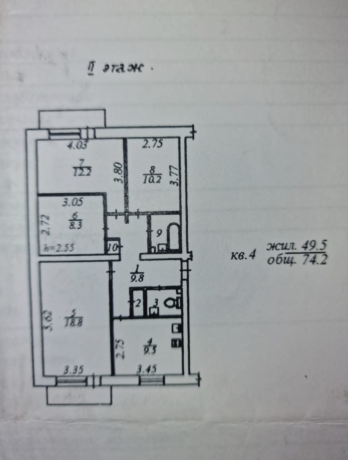 Общая площадь 74.2 м2
