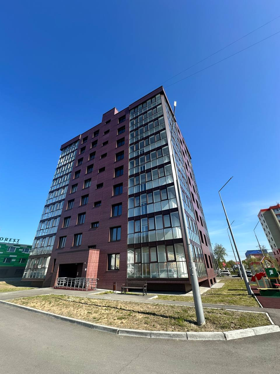 В шаговой доступности находится общеобразовательная школа №1, несколько детских садов, магазины, стадион «Строитель». Во дворе дома размещена игровая площадка для детей дошкольного и младшего школьного возраста, удобные скамейки.