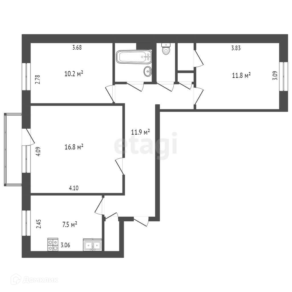 3-комнатная квартира, 64.4 м2, этаж 4 / 4, на продажу в Елизово, Молодёжная улица, 25