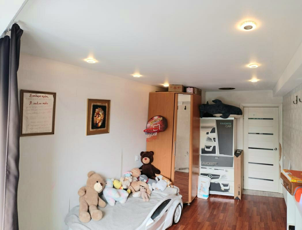 * Косметический ремонт: Натяжные потолки, ламинат и линолеум на полах, сейфовая дверь.