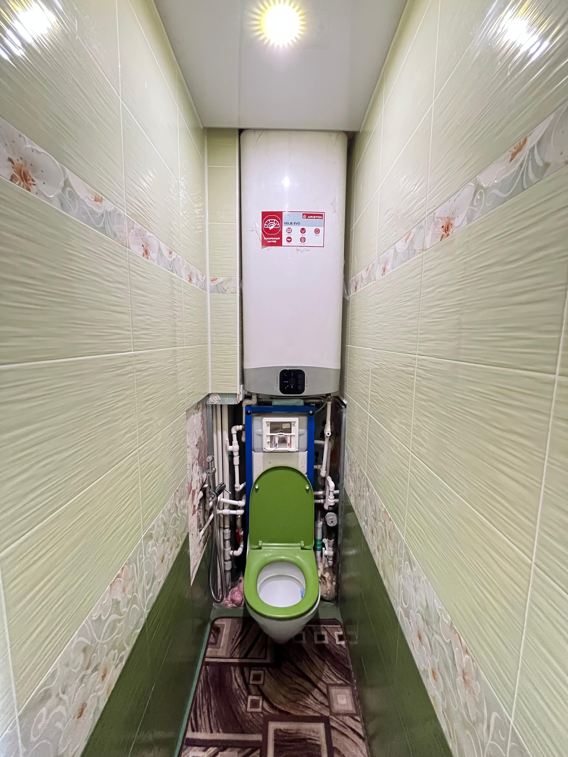 — Санузел раздельный, облицован кафелем. Имеется бойлер на 100 литров и гигиенический душ.